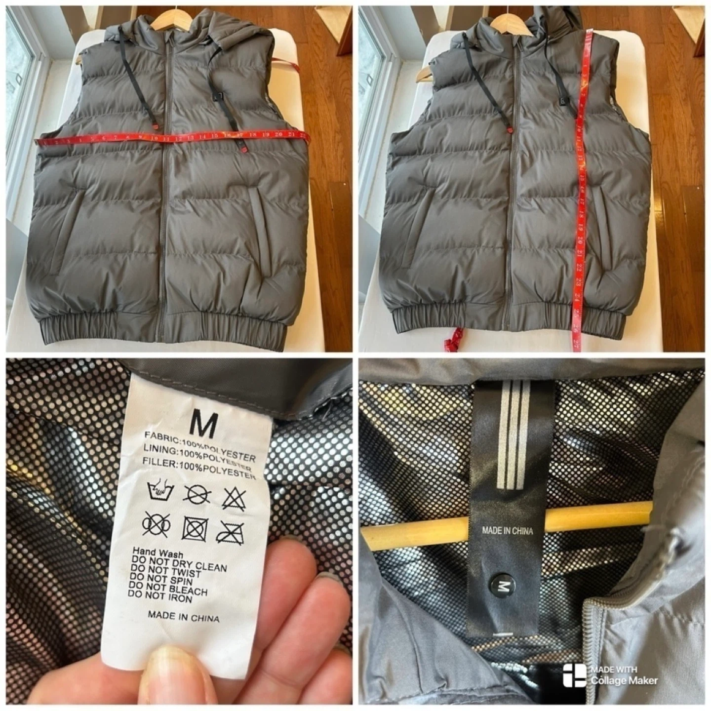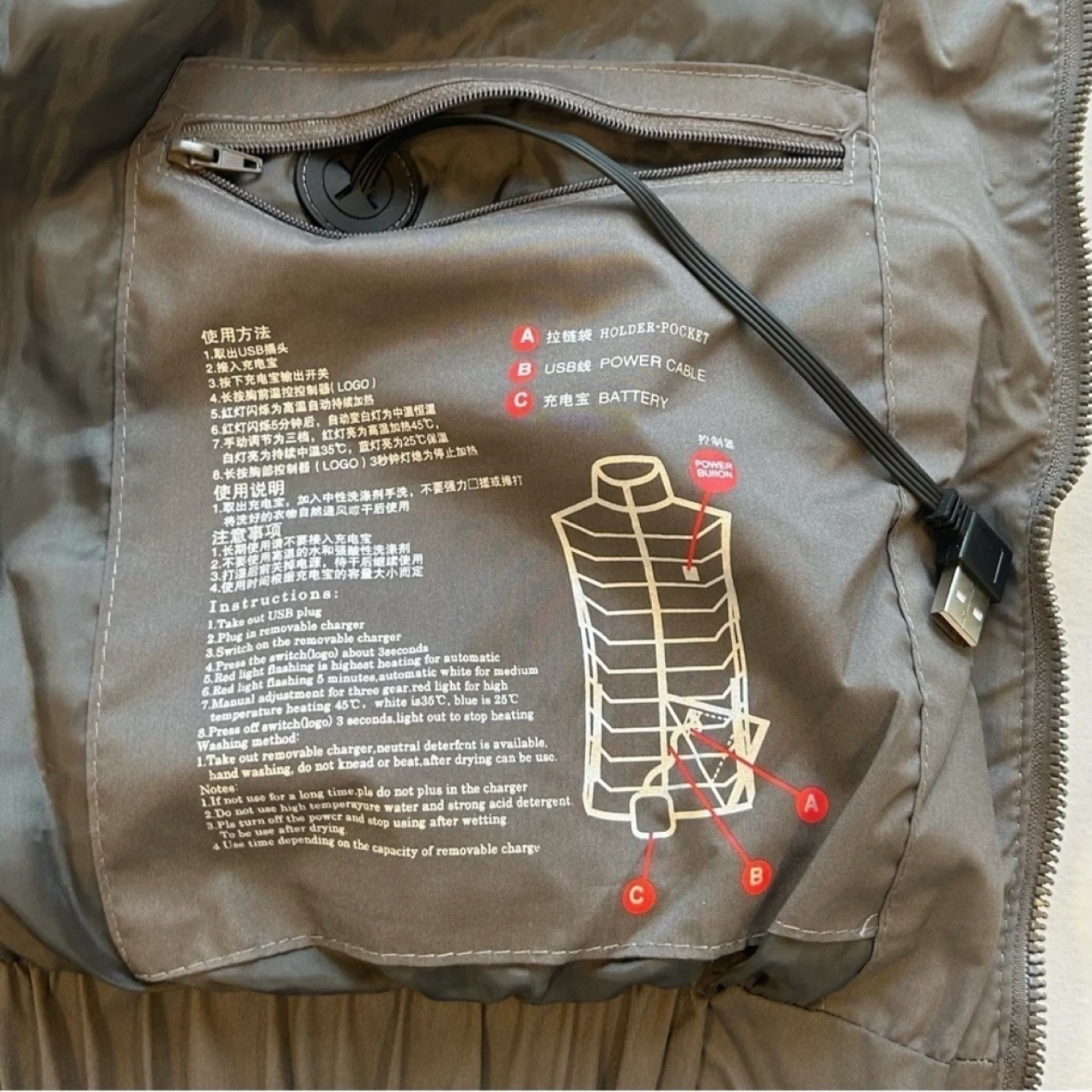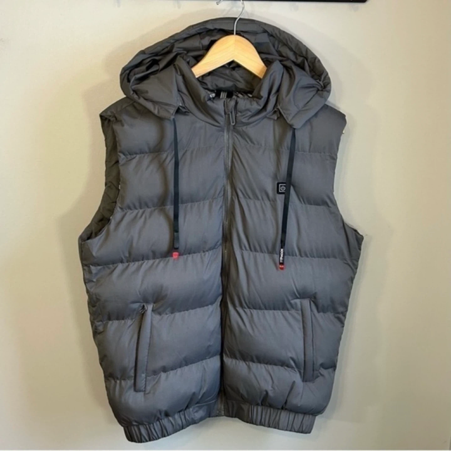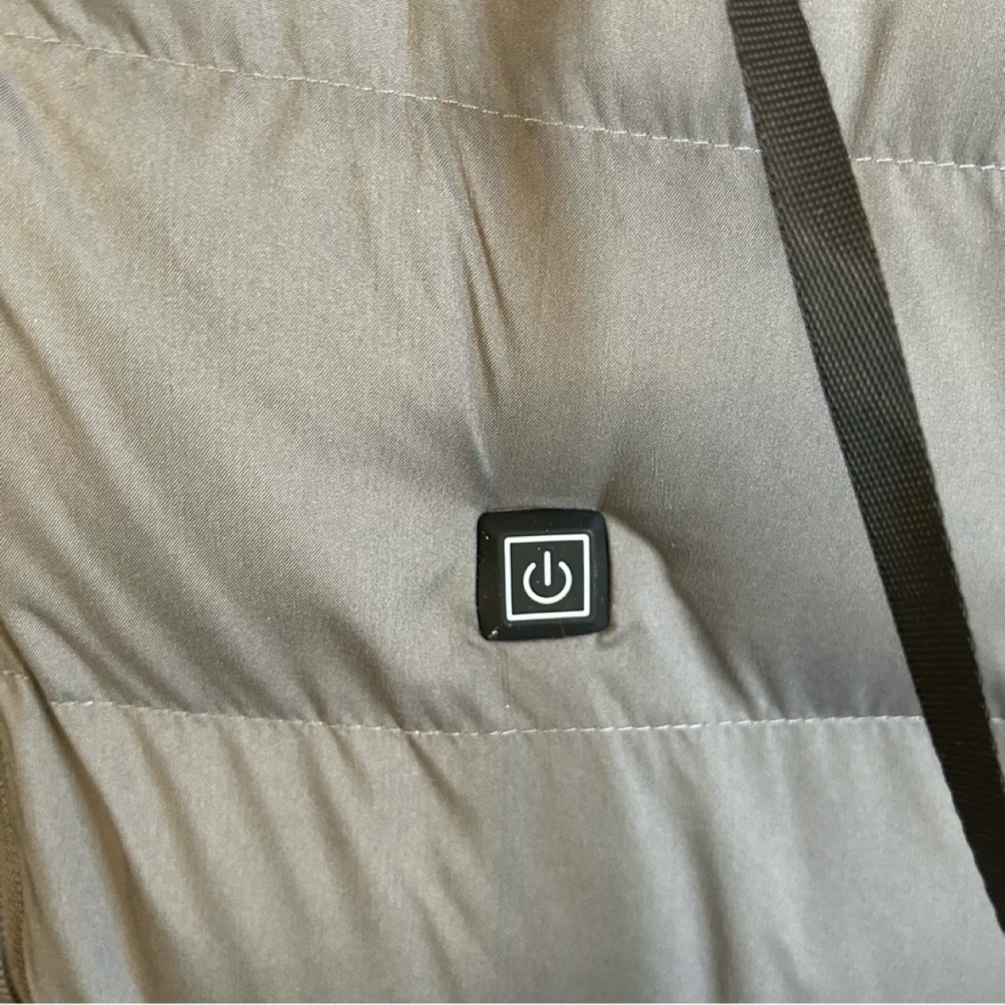 122Grey heated Typhoon puffer vest from SUP. Wired with heating elements powered by any 2A/5V+ USB charger (not included) and operated with an on/off button at chest. Worn only once. Men’s Size M. See photos for measurements. Cross posted. Winnipeg - Pick up only (Located 2 blocks west of Polo Park). Shipping options available through other platforms message me for details.