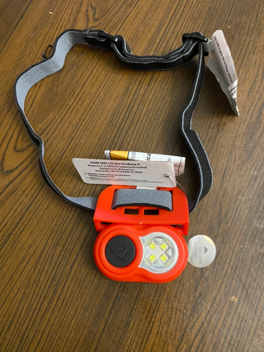 47Selling a brand new Ozark Trail LED mini headlamp! It's red and requires 2 x CR2032 batteries (included). Great for camping or hiking!