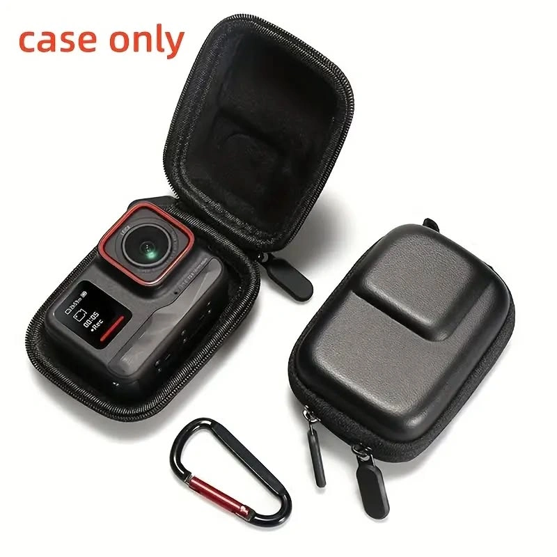 Compact hard-shell style storage bag with sturdy zipper & carry loop. Perfect for protecting and organizing DJI Action 3/4/5 Pro or Insta360 Ace Pro/Ace Pro2 cameras while traveling. Durable, lightweight, and easy to carry.