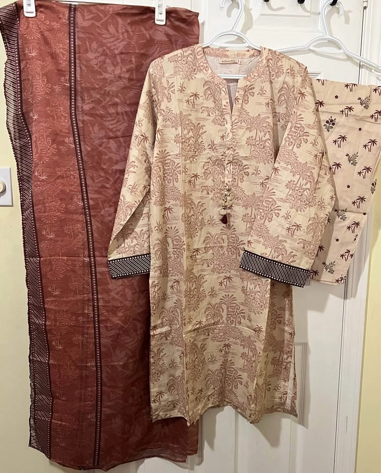 Eastern Tag 3 Pcs suit with bead work on neckline