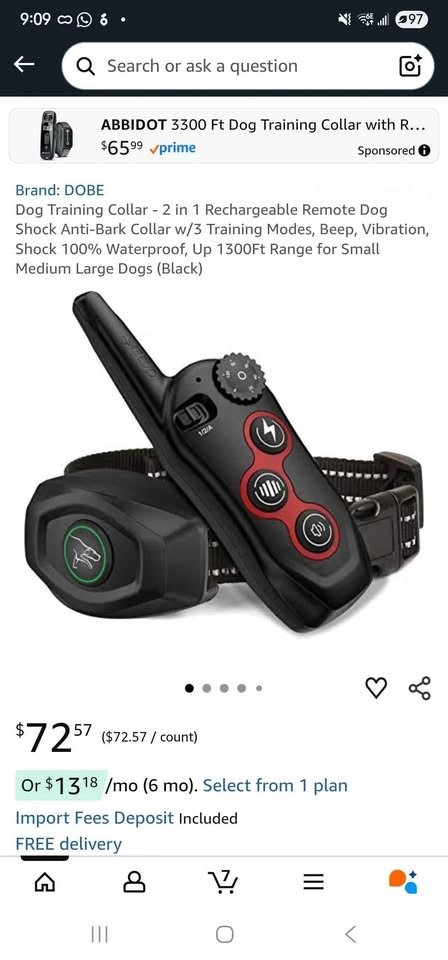 10Dog Training Collar - 2 in 1 Rechargeable Remote Dog Shock Anti-Bark Collar w/3 Training Modes, Beep, Vibration, Shock 100% Waterproof, Up 1300Ft Range for Small Medium Large Dogs (Black) It's new. Bought as a gift for someone. Don't need it anymore. Price is firm because it's new, everything intact. New is 72+taxes on Amazon.