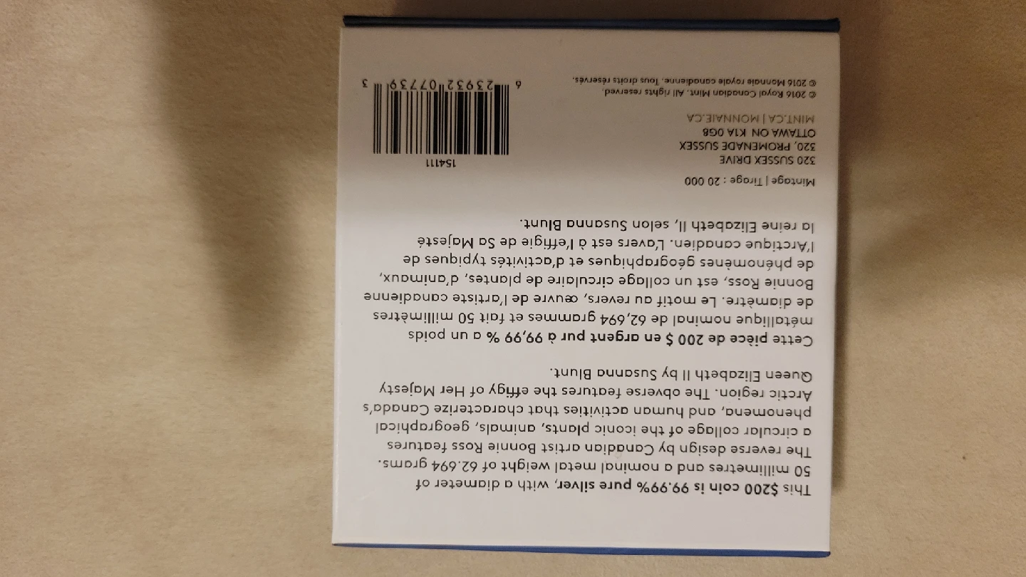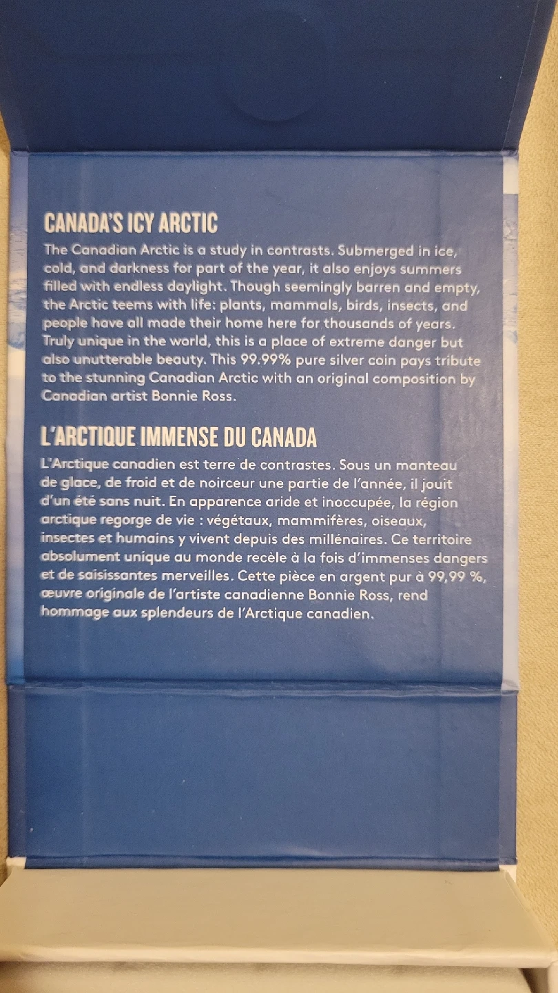 Selling a beautiful Canada's Icy Arctic $200 pure silver coin. This coin pays tribute to the stunning Canadian Arctic with an original composition by Canadian artist Bonnie Ross. The reverse design by Canadian artist Bonnie Ross features a circular collage of the iconic plants, animals, geographical phenomena, and human activities that characterize Canada's Arctic region. Comes with the original box and packaging!