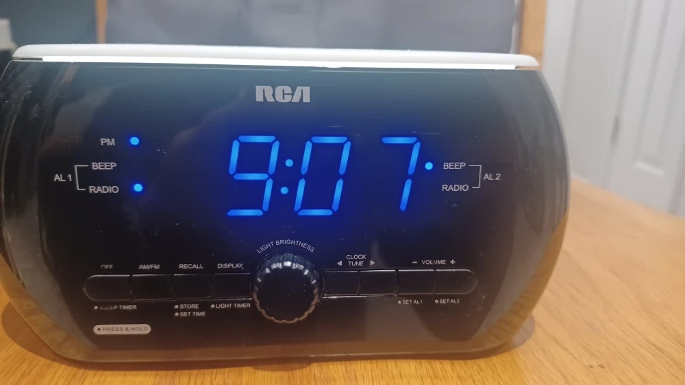 Selling an RCA digital alarm clock radio. It's in great shape and ready to help you wake up on time! Features include a digital display, alarm settings, and a radio function.