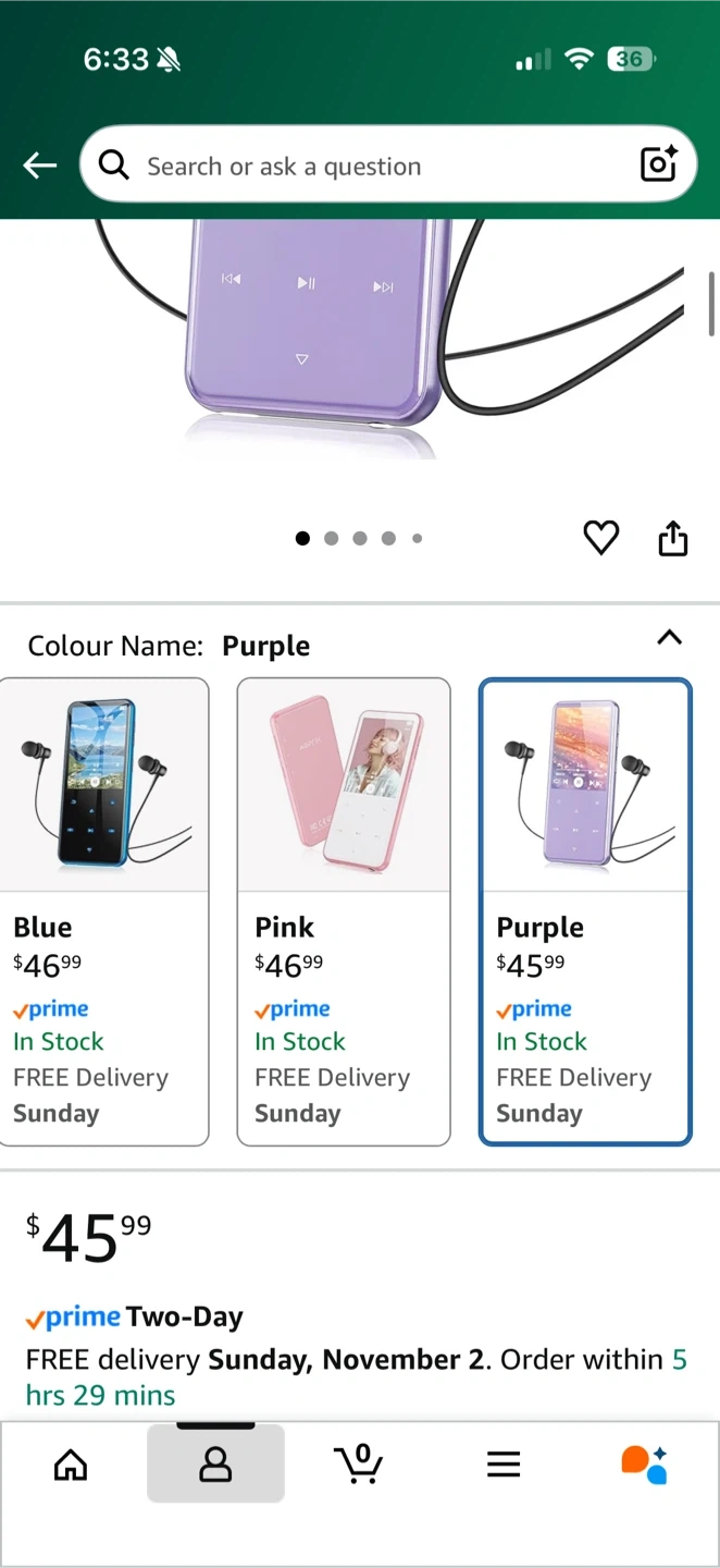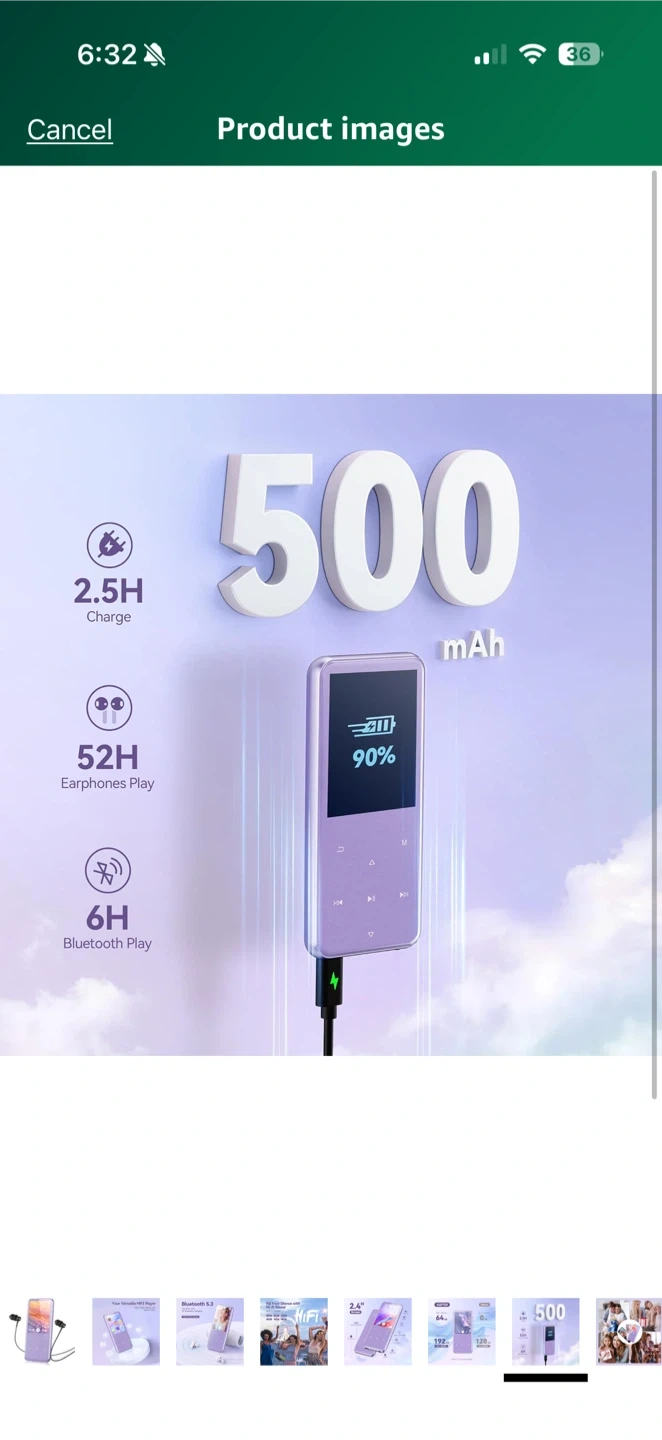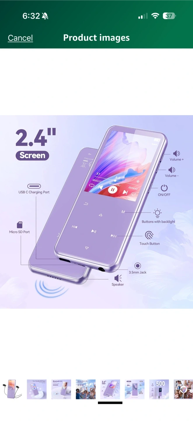 AGPTEK M3 MP3 Player in purple! It has a 2.4" screen, USB-C charging port, and a 3.5mm jack. It supports up to 128GB and has Bluetooth. It's got 64GB built-in memory, and extends to 192GB with a TF card (not included). Battery life is great, with 2.5 hours for charging, 52 hours of earphone play, and 6 hours of Bluetooth play.