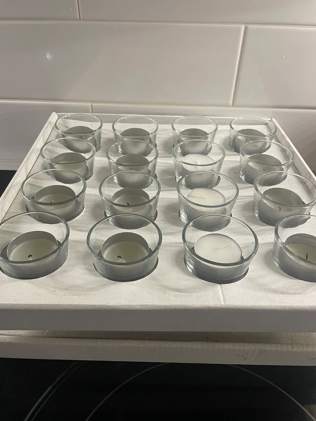 Selling 30 votive candle holders, most have tea lights included, a few unlit