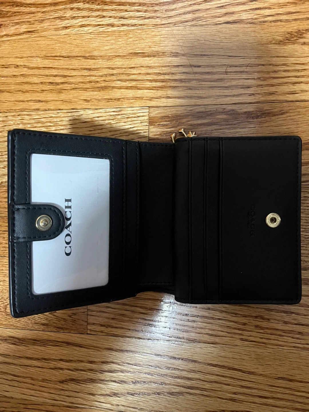Selling a gently used Coach trifold wallet in black leather! It's in great condition and has plenty of space for cards and cash. Perfect for everyday use!
