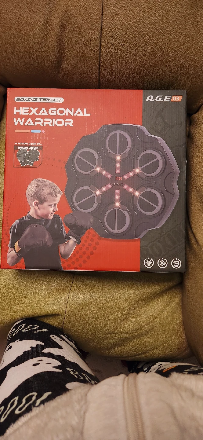 Selling a brand new A.G.E 03 Hexagonal Warrior Boxing Target! It includes a pair of boxing gloves and has brilliant lights and Bluetooth music. It also has a boxing mode. Get ready to train!
