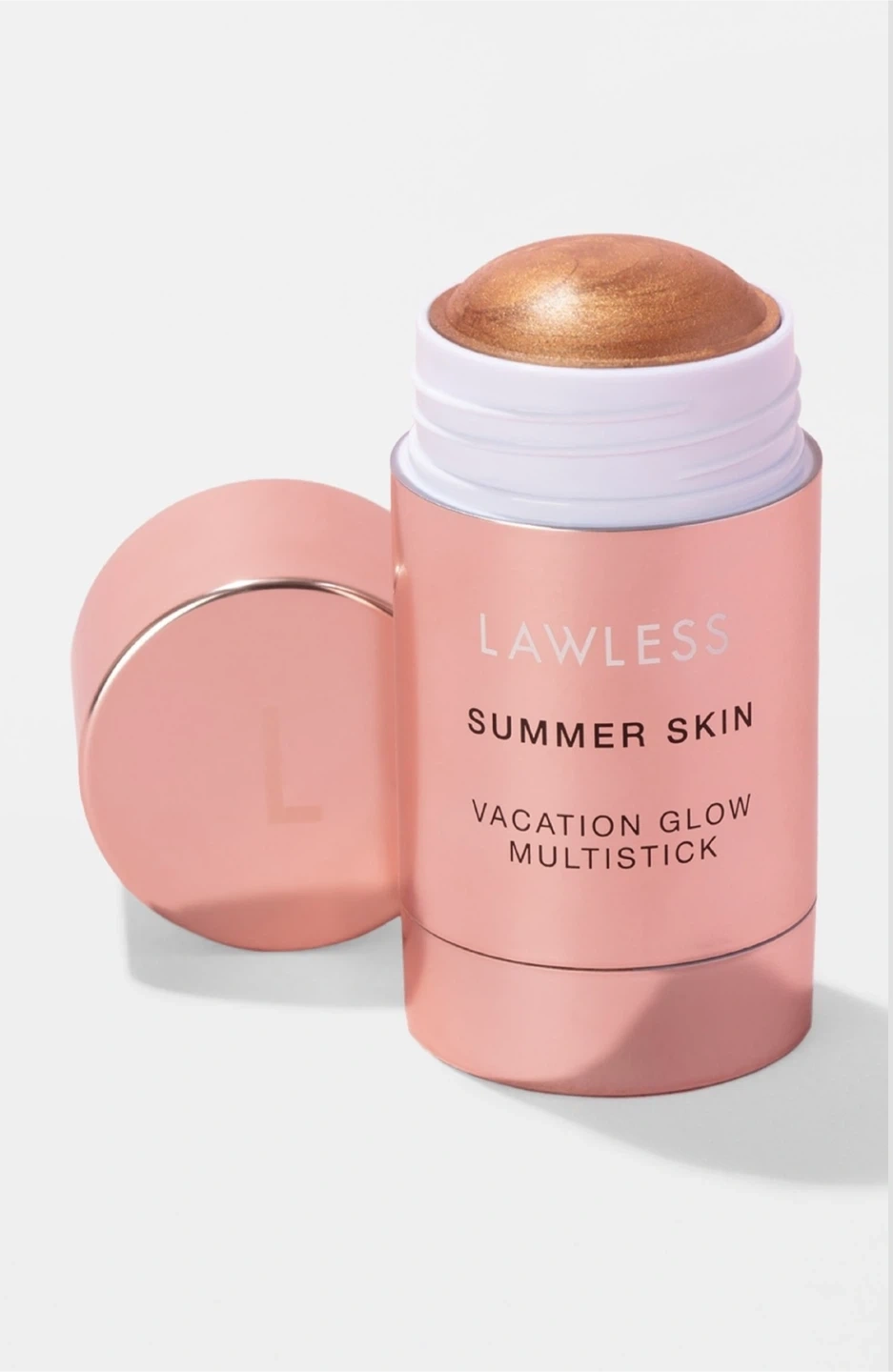 885Swatch only Lawless Summer Skin Vacation Glow Multistick Highlighter in Tropics. A multi-use highlight stick from LAWLESS with an ultra-creamy formula that captures the gentle illumination of a summer glow, day or night. Formulated with nourishing oils and butters, this body and face highlighter moisturizes skin and reduces the appearance of fine lines to leave you with soft, supple and glowing skin. The brand's signature scent transports you to a tropical destination. Key Ingredients: Mango Butter, Shea Butter, And Jojoba Oil. Skin Type: For all types How to Use: Apply to face or body for an immediate sun-kissed glow that lasts all day. Full size 1.0 oz / 30 g Pickup in Richmond, cash only.