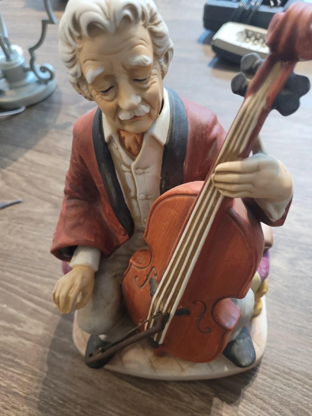 15Selling a vintage figurine of a man playing the cello. It's a unique piece and would make a lovely addition to any collection or home!