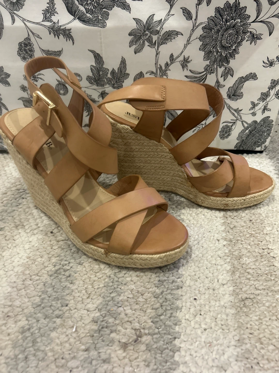 65Cute tan wedge sandals from JustFab! These are in great condition and ready for a new home. Perfect for adding a bit of height and style to any outfit