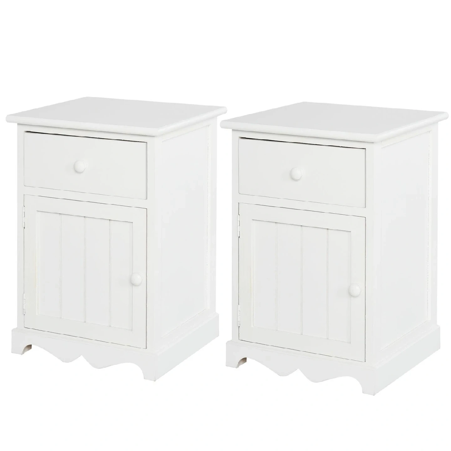 White Nightstand with Drawer & Door set of 2