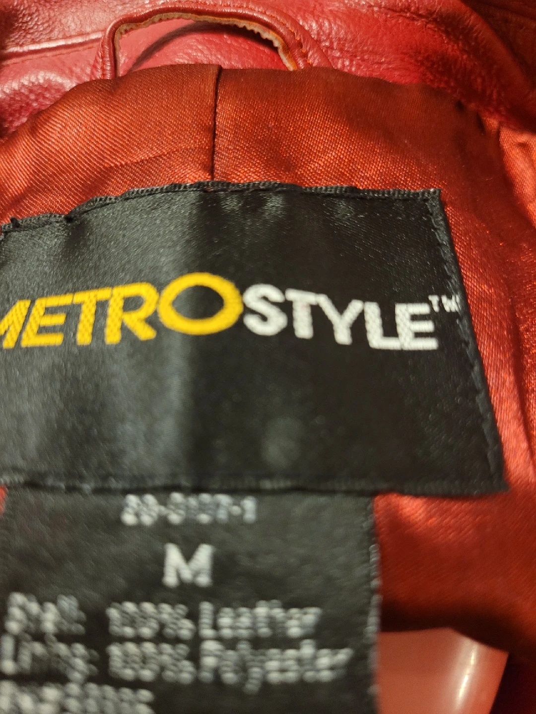 15Selling a stylish Metrostyle red leather coat in size medium. It's made with 100% leather shell and a 100% polyester lining. Perfect for adding a pop of colour to your wardrobe!