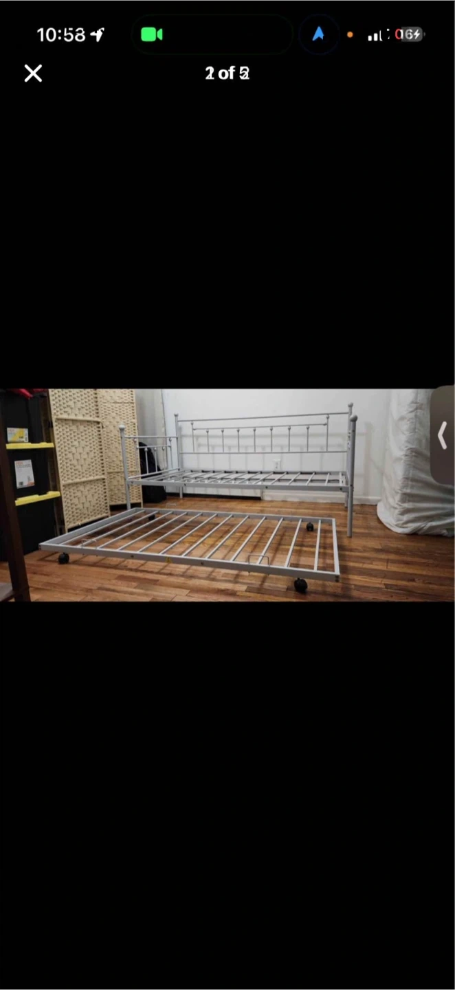 Selling a stylish metal daybed with a trundle! It's in great condition and perfect for a guest room or small space. The daybed features a classic design with a sturdy metal frame. The trundle pulls out easily for extra sleeping space. It's a great way to maximize space and add a touch of elegance to your home