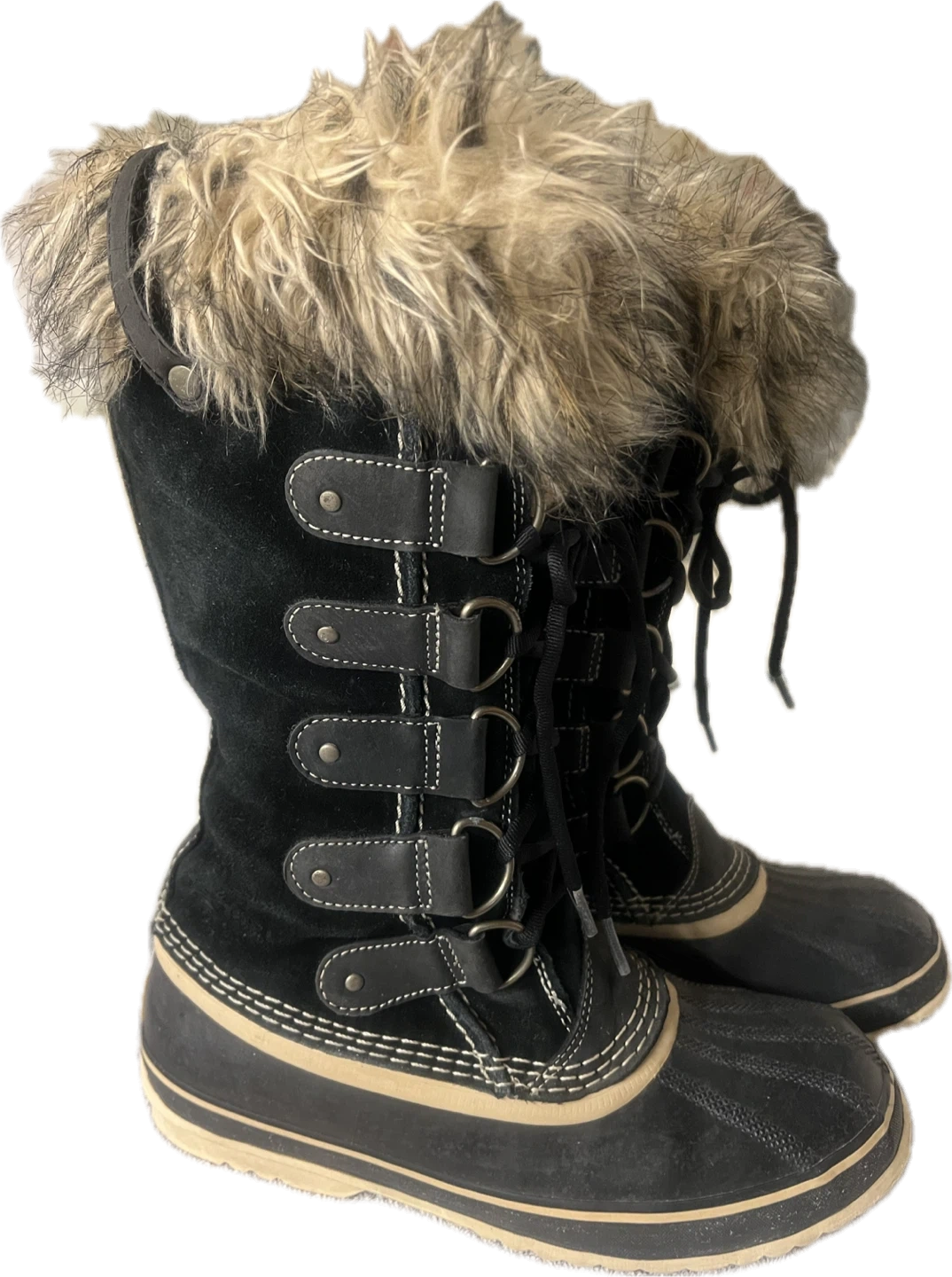Cozy and stylish Sorel winter boots in black, perfect for keeping your feet warm and dry this winter! They are size 7 and feature a faux fur trim.