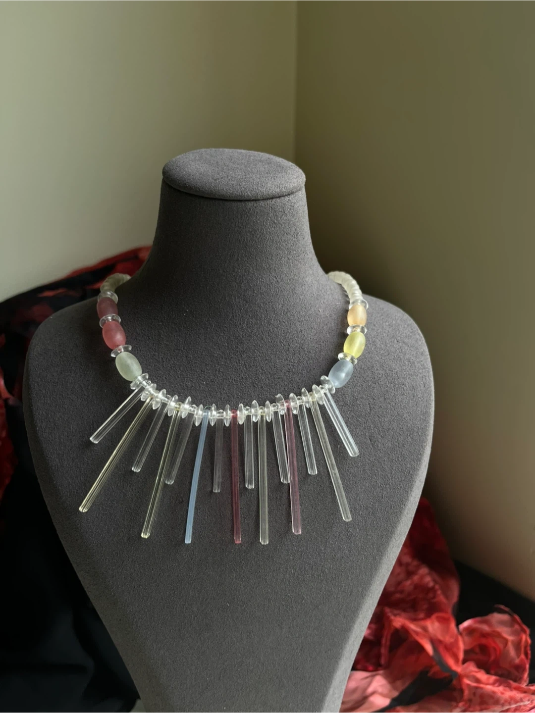 28Vintage Pastel Rainbow Art Icicle Beaded Necklace.