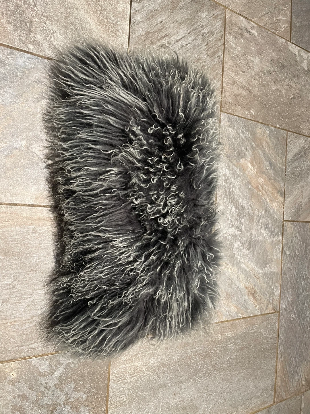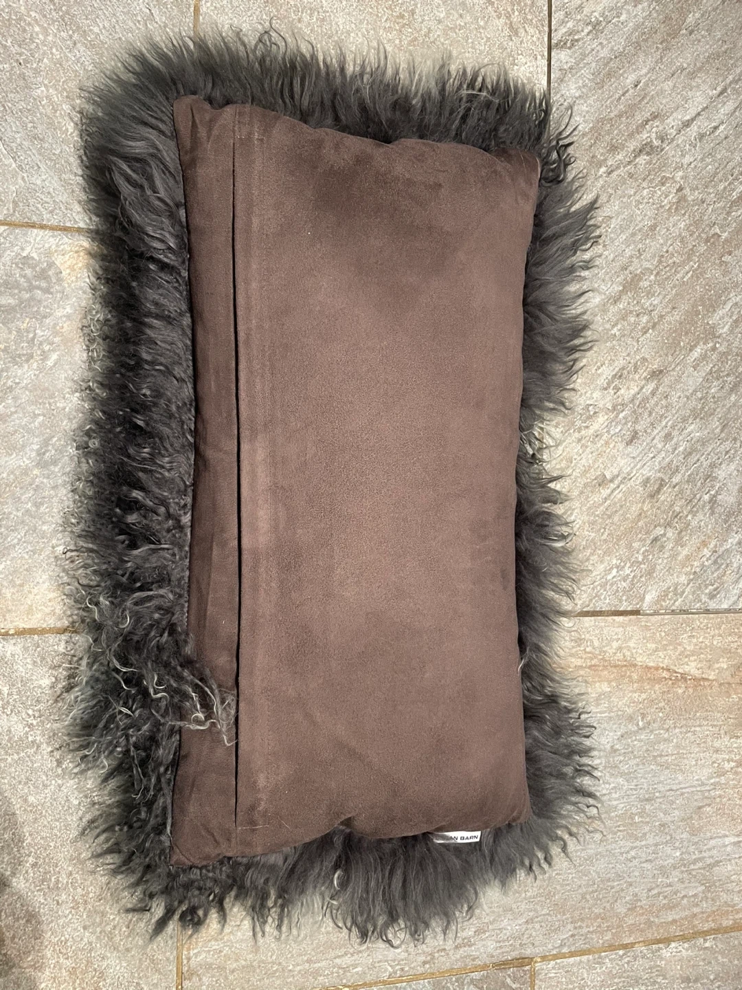 Urban Barn pillow with a unique design! It features a soft, suede-like material on one side and fluffy, grey fur on the other. It's in great condition and would add a touch of cozy texture to any room