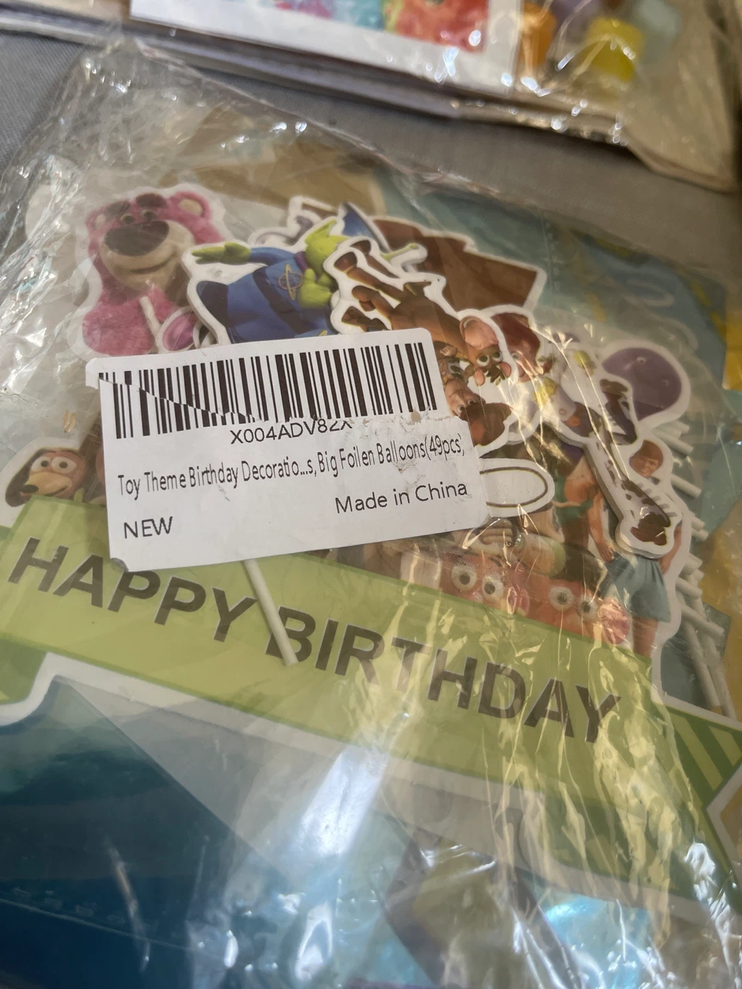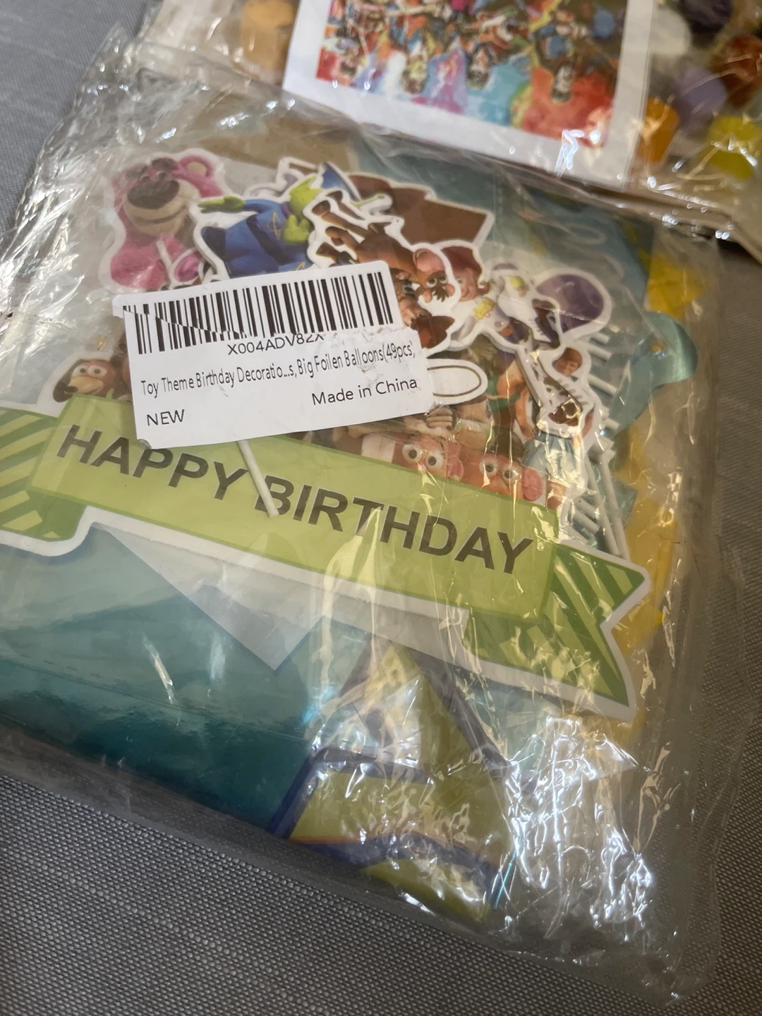 Brand new Toy Story theme birthday decorations with big foil balloons! Includes 49 pieces to make your party extra special!