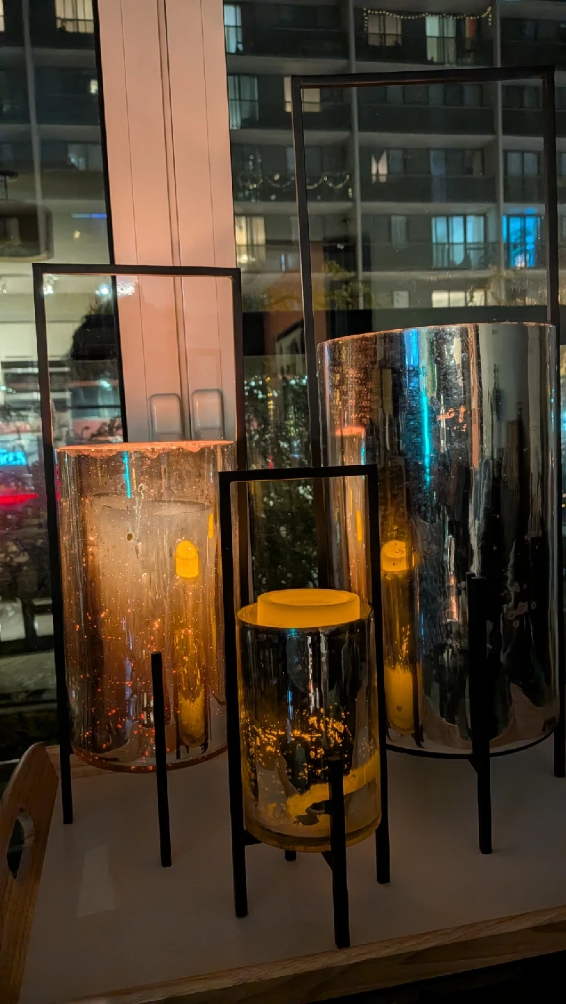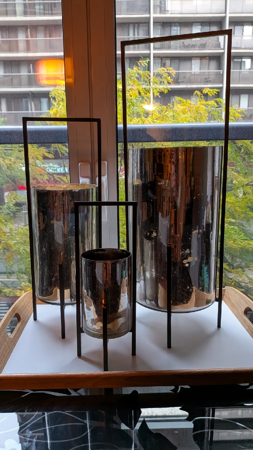 Selling a set of metal and glass candle holders! They add a warm and stylish touch to any room, balcony or patio. Perfect for creating a cozy atmosphere in your home.