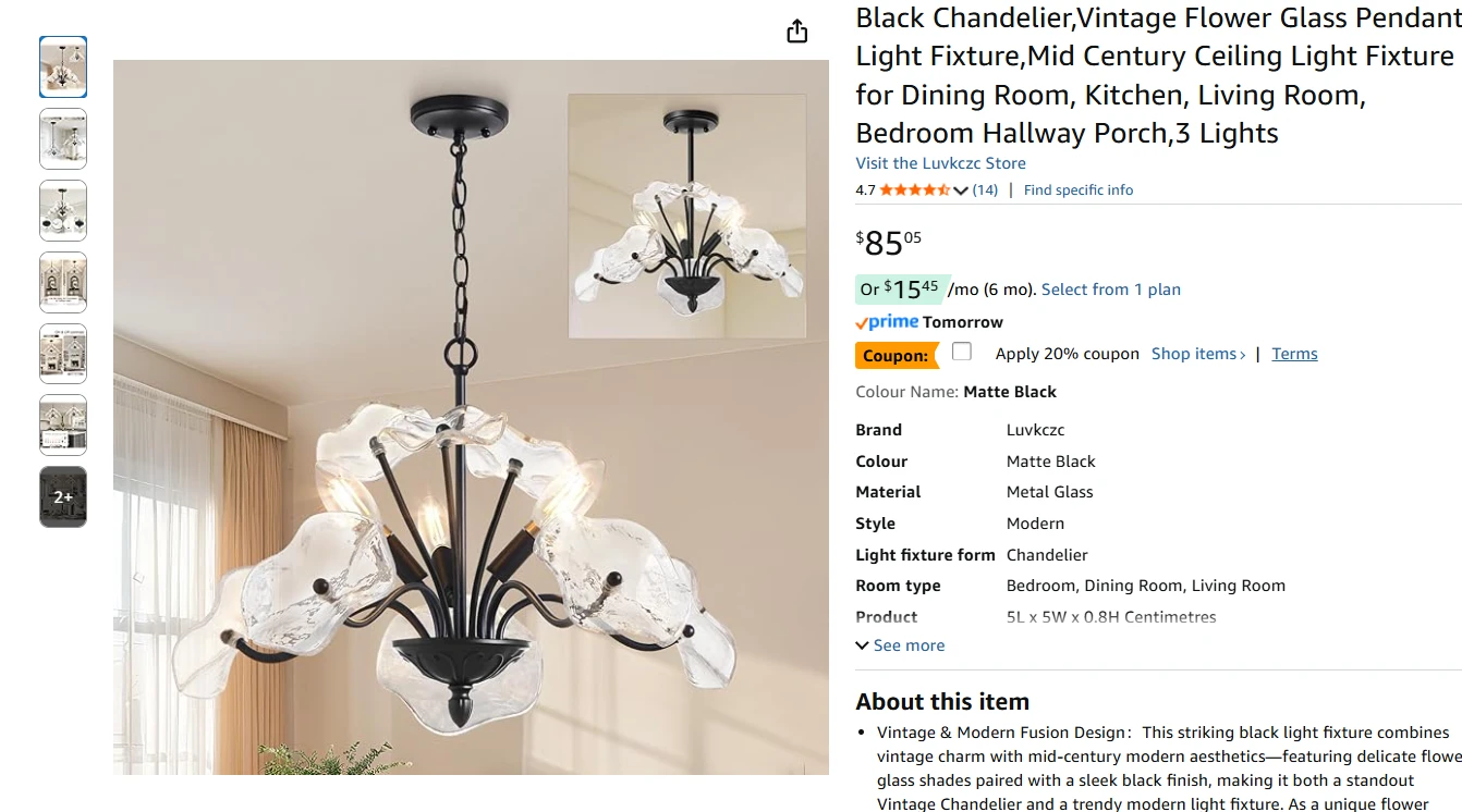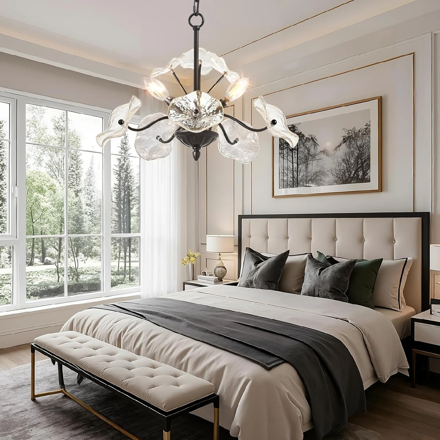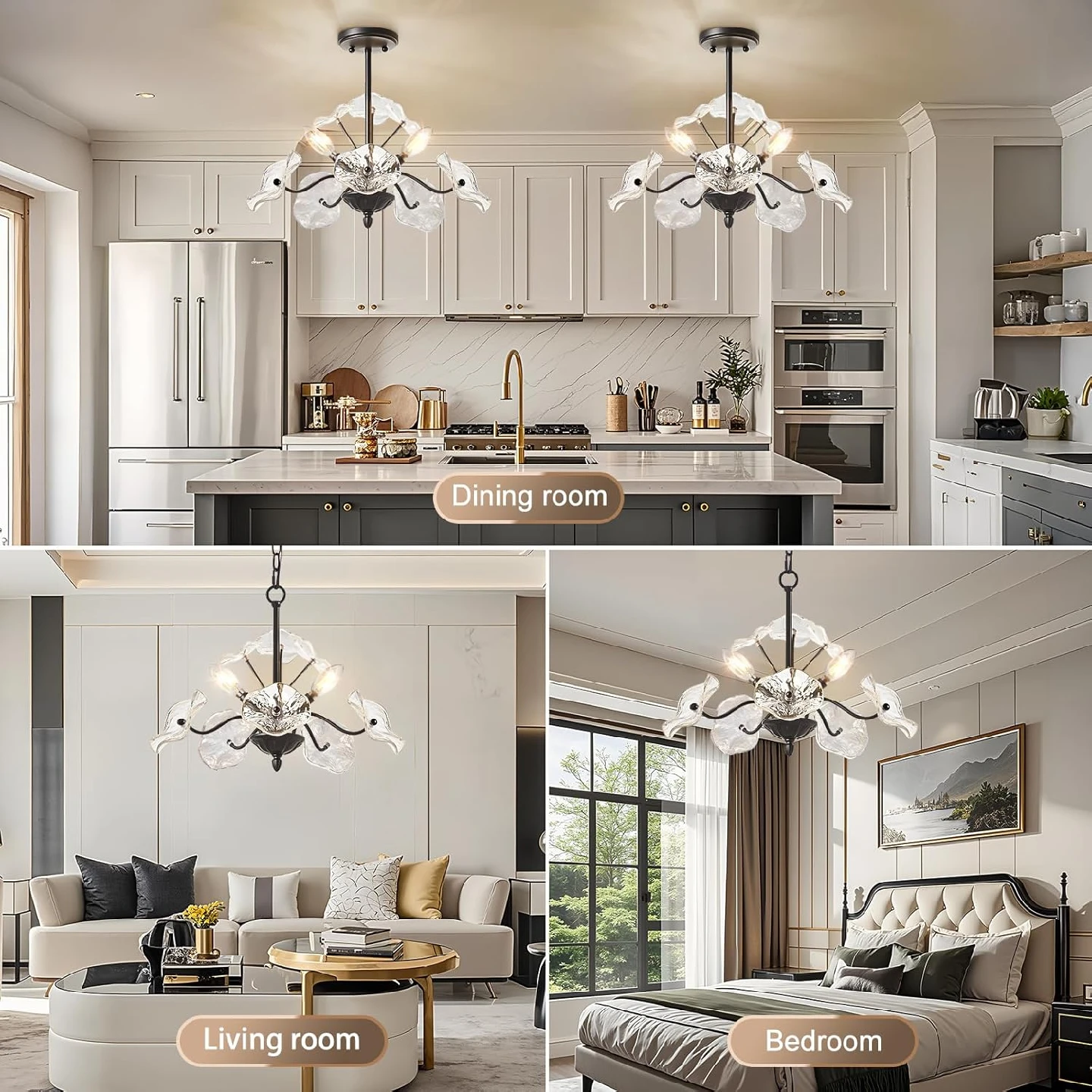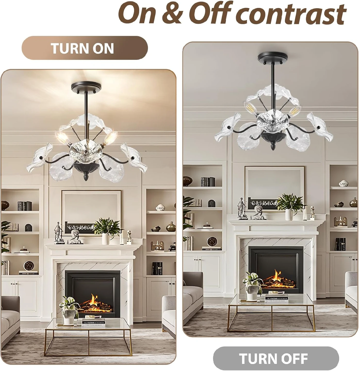 Vintage & Modern Fusion Design:This striking black light fixture combines vintage charm with mid-century modern aesthetics—featuring delicate flower glass shades paired with a sleek black finish, making it both a standout Vintage Chandelier and a trendy modern light fixture. As a unique flower pendant light, it adds a bold yet elegant focal point to any space, effortlessly blending with retro or contemporary decor styles.