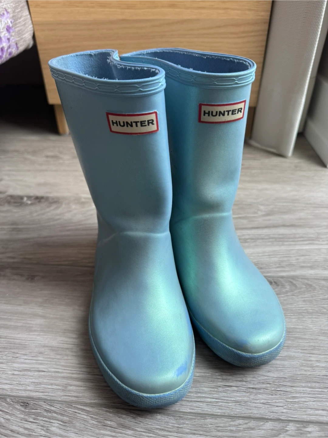 These Hunter Kids First Classic Rain Boots are in a lovely blue colour and are size UK12. They're perfect for keeping your little one's feet dry on those rainy days!