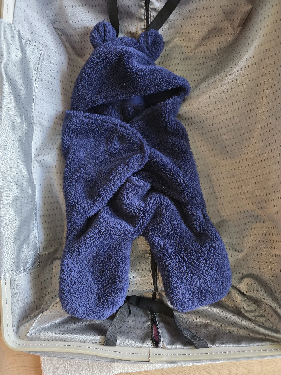 Cute blue hooded suit with bear ears! It's in great condition and made of a soft, fuzzy material. Perfect for keeping warm and stylish during the colder months