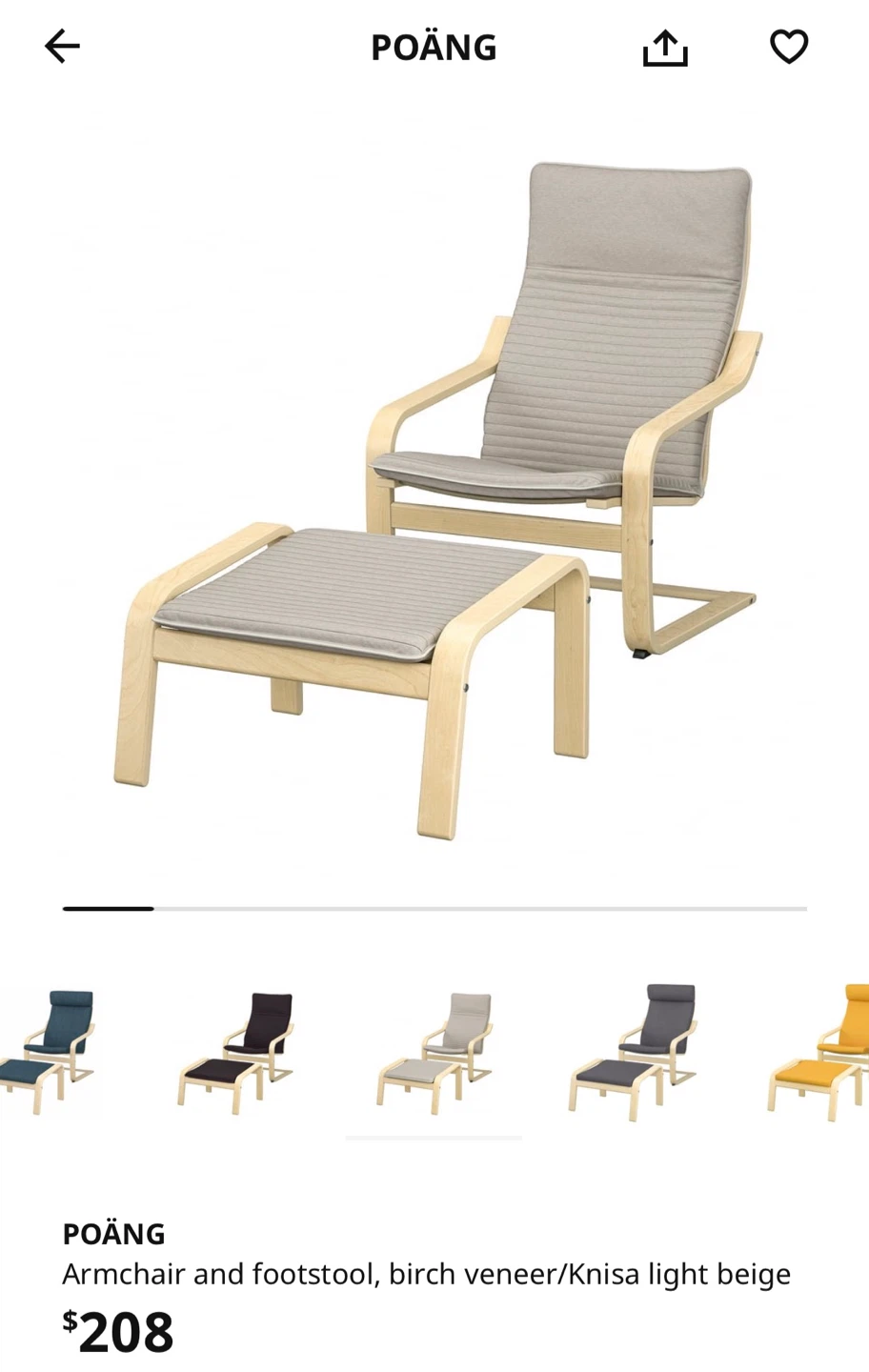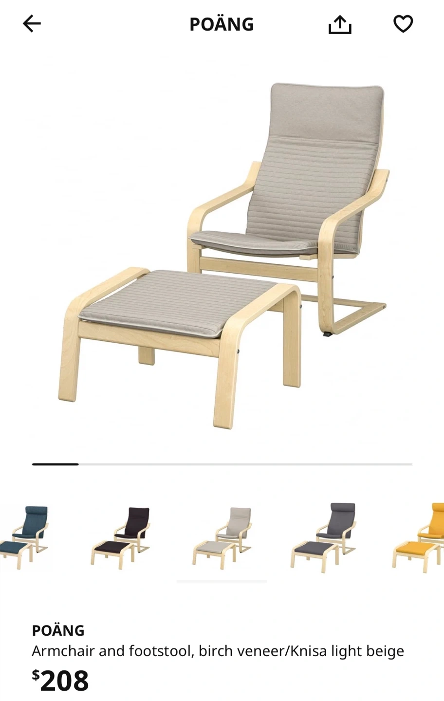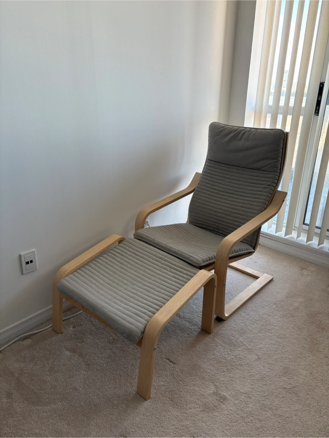 Selling a IKEA POÄNG armchair and footstool set in a great condition. Originally bought for $208. Selling it due to moving. Pick-up only. Cash only.