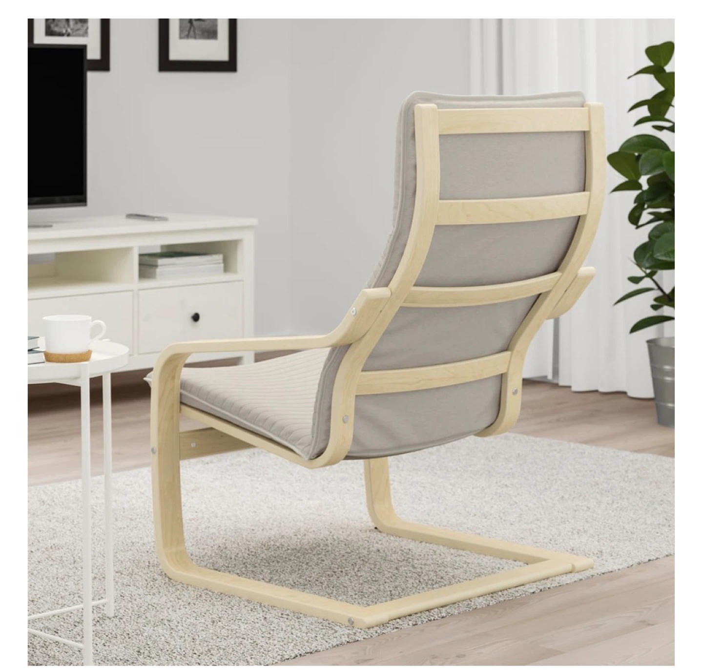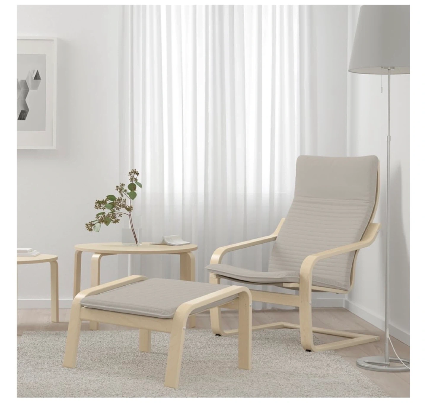 IKEA POÄNG Armchair & Footstool - Birch/Knisa Light Beige
