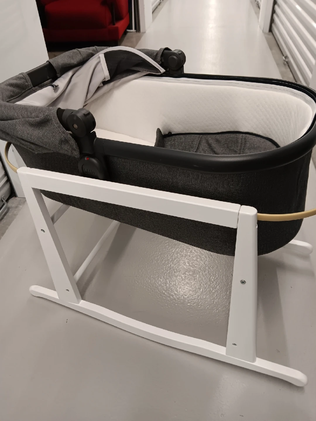 Selling a gently used UPPAbaby bassinet with stand. It's in great condition and perfect for your little one! The bassinet is grey and the stand is white. It's a great, safe place for your baby to sleep!