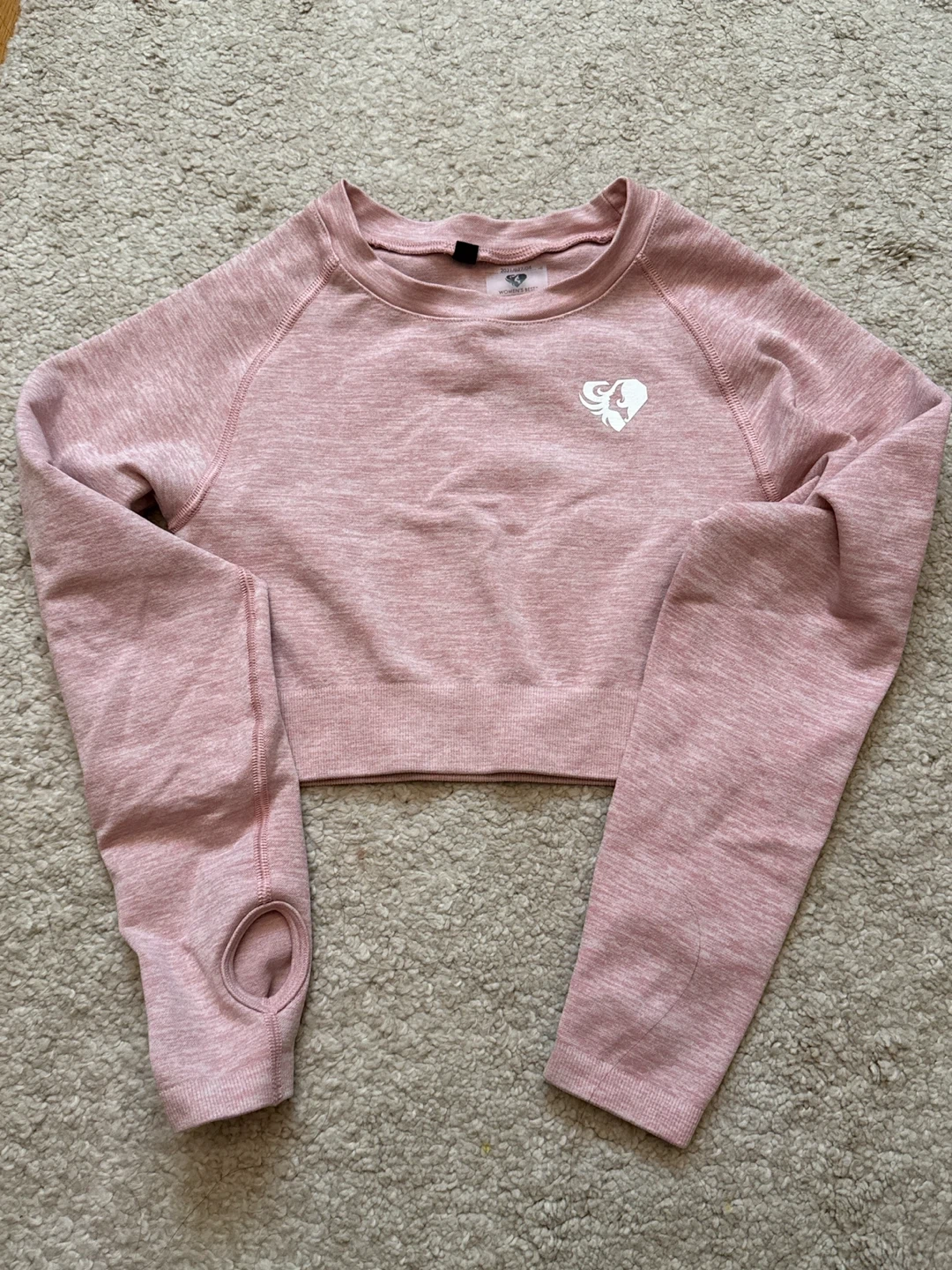 15Selling a Women's Best crop top in a lovely pink colour! It has a thumb hole detail on the sleeves, perfect for workouts or just lounging around. It's in great condition and ready for a new home