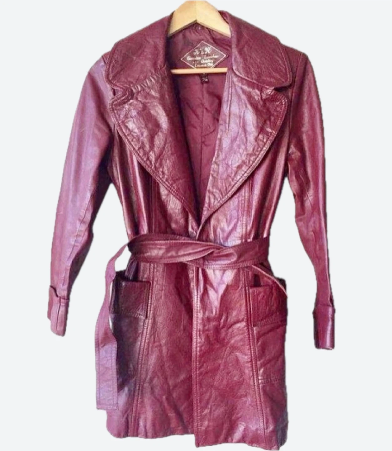 Selling a K & H genuine leather high quality coat in a lovely burgundy colour. The lining is 100% nylon taffeta. It's a size 11/12.