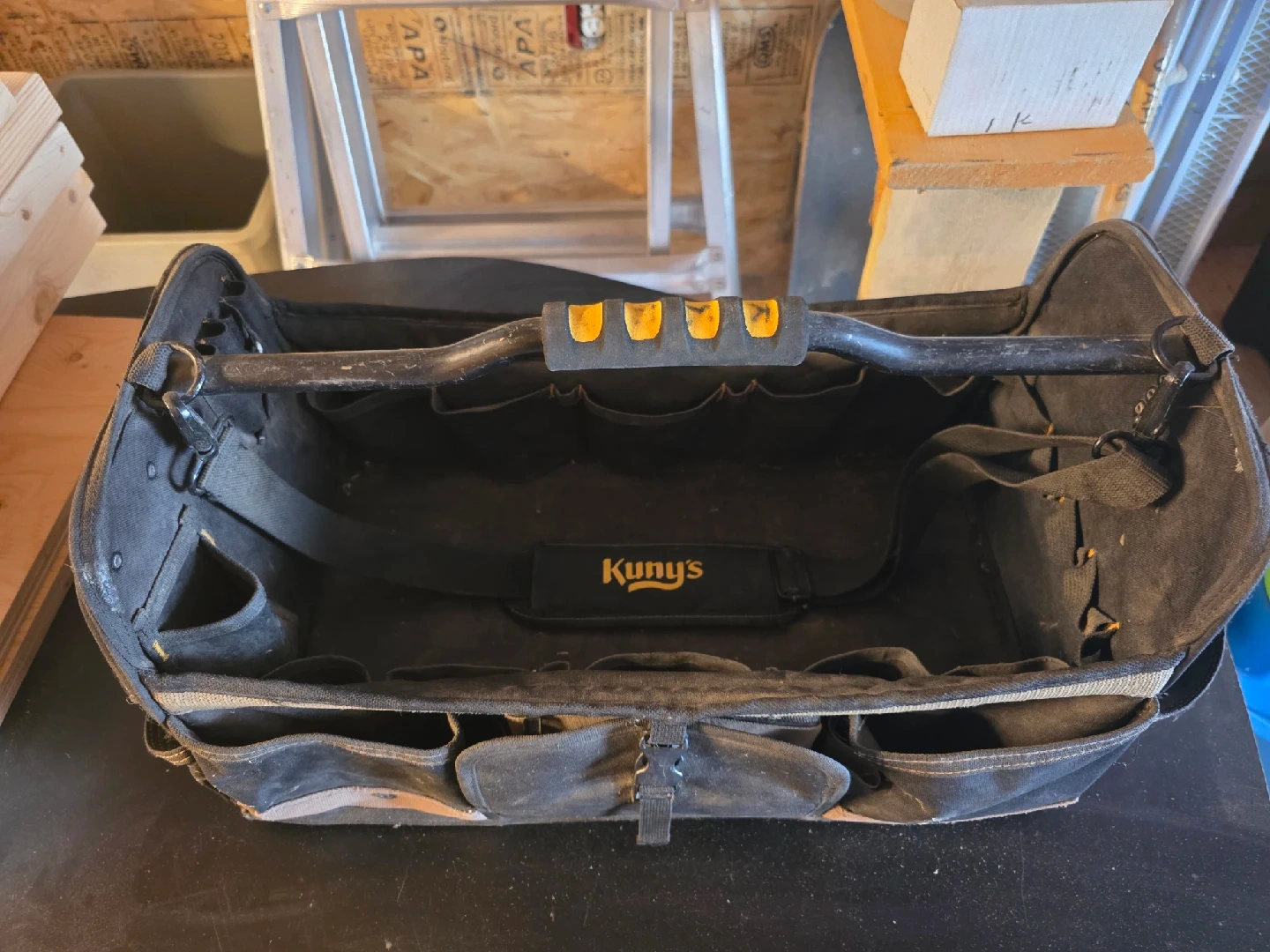 Selling a Kuny's tool bag! It's in used condition, but still has lots of life left. Perfect for keeping all your tools organized and easy to carry around. It features multiple pockets and a sturdy handle and strap for comfortable use.