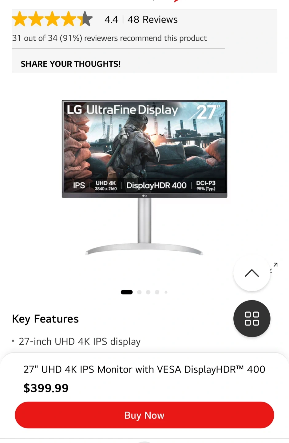 55Selling my LG 27UP850 27-inch UHD 4K IPS monitor! It's in excellent condition and comes with the original box. The monitor features VESA DisplayHDR 400 for great picture quality. It's a fantastic display for both work and entertainment!