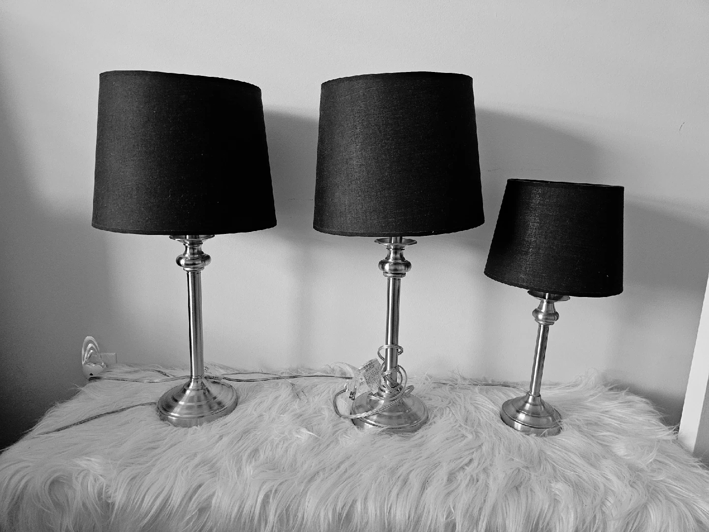 15Here's a table lamp with a classic design! It features a black lampshade and a silver-coloured base. Perfect for adding a touch of elegance to any room