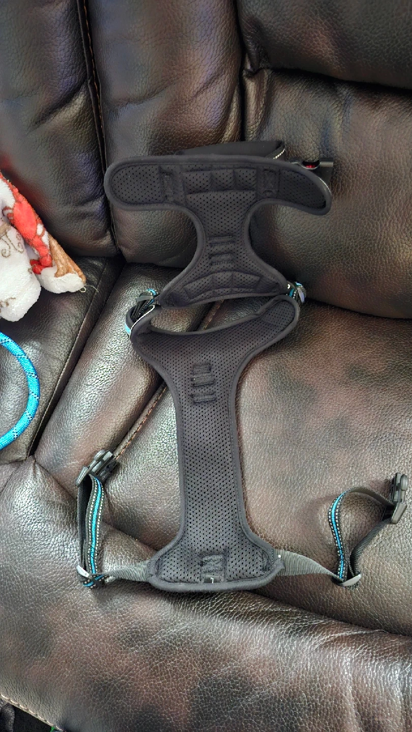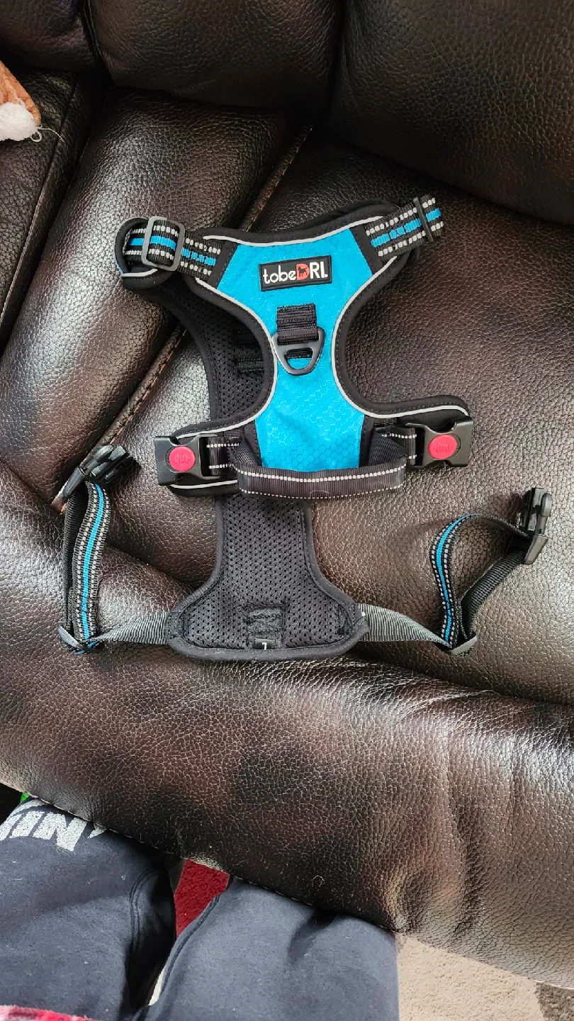 Here's a dog harness and leash set! The harness is a comfortable and secure fit for your furry friend. The leash is durable and features a comfortable handle. Both are in excellent condition and ready for your next adventure!