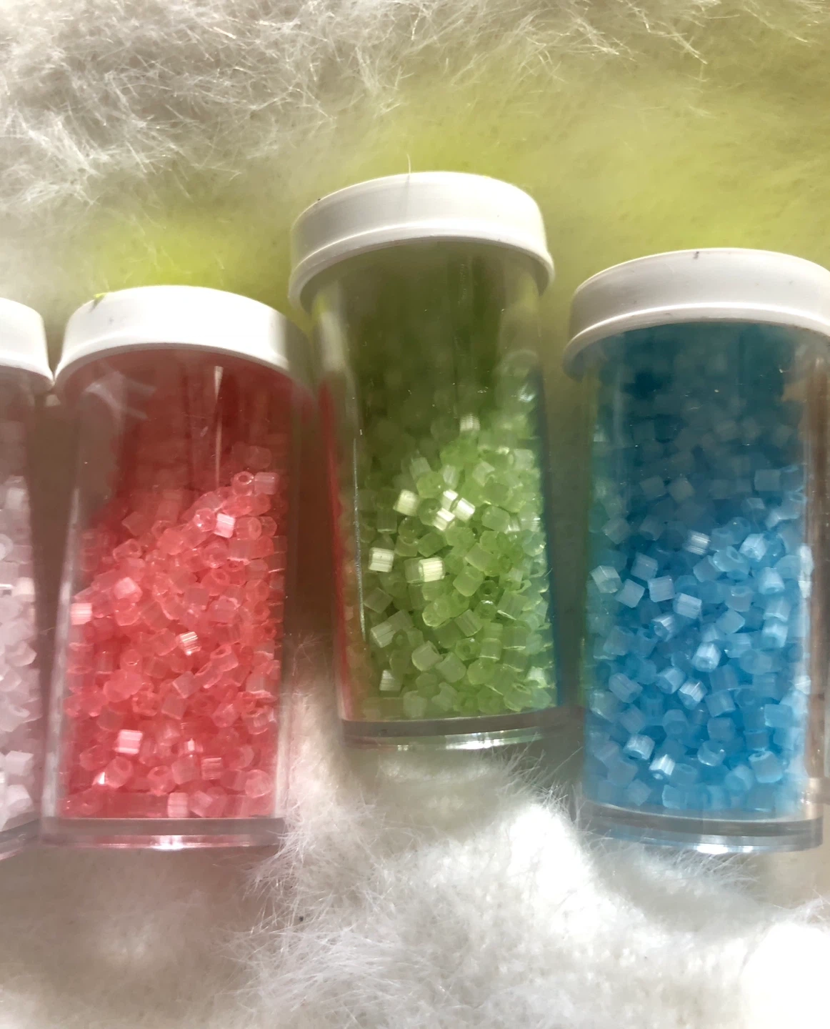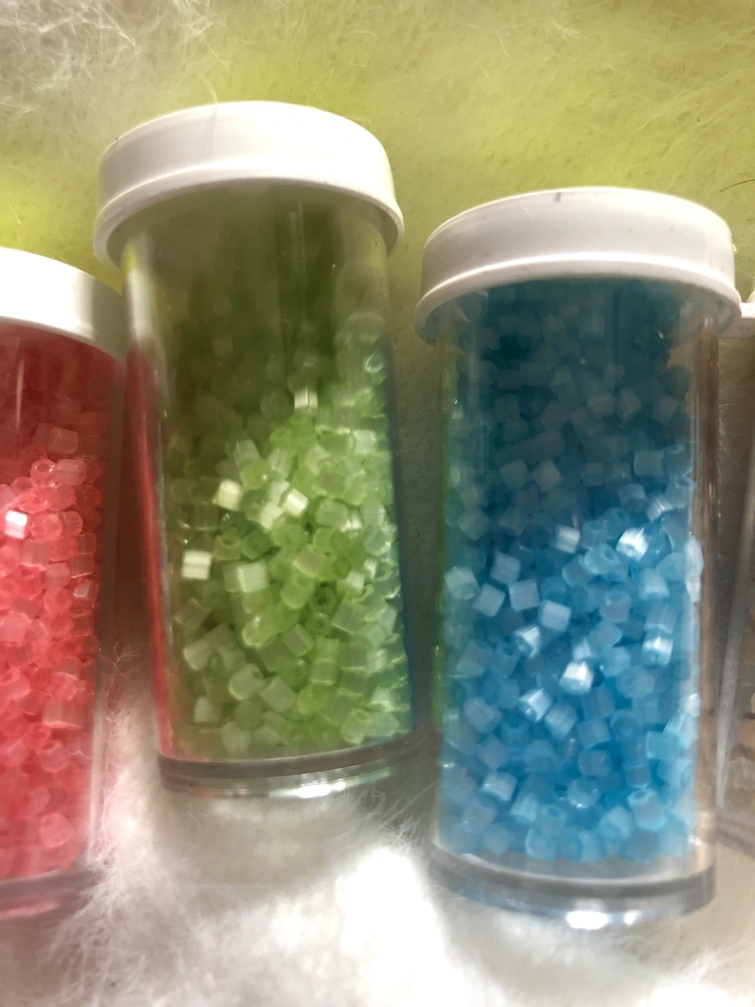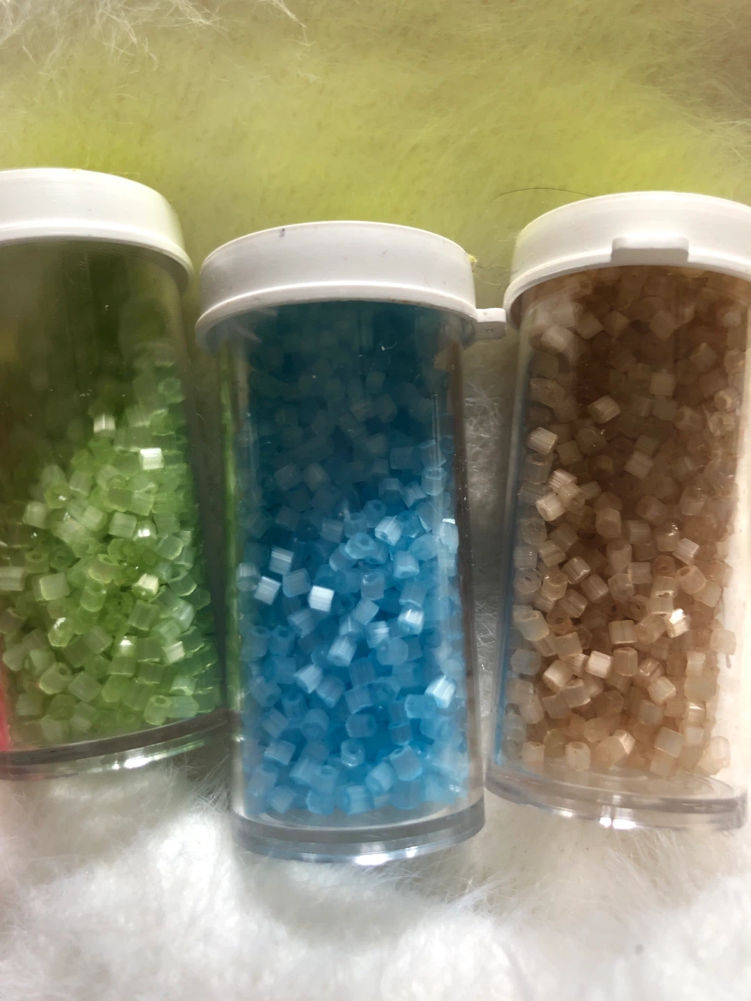 I'm offering a set of seed beads in clear containers! Great for crafting and DIY projects. Colours include white, pink, green, blue, and brown. Perfect for adding a pop of colour to your creations
