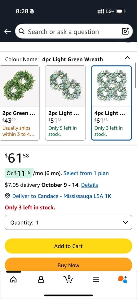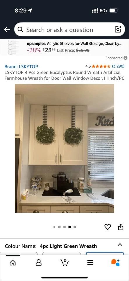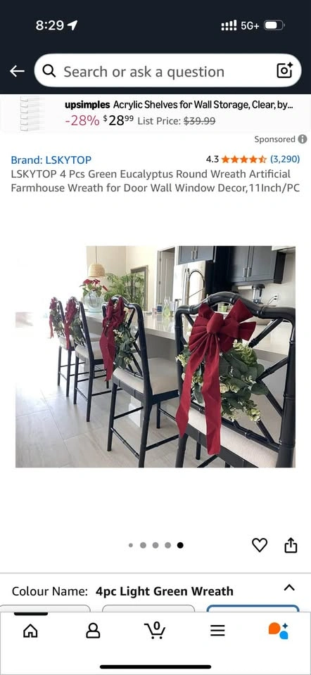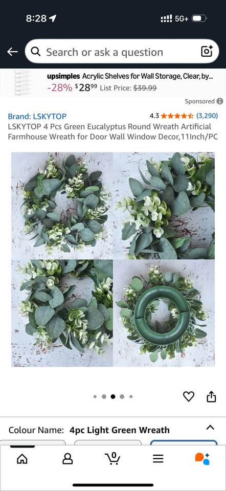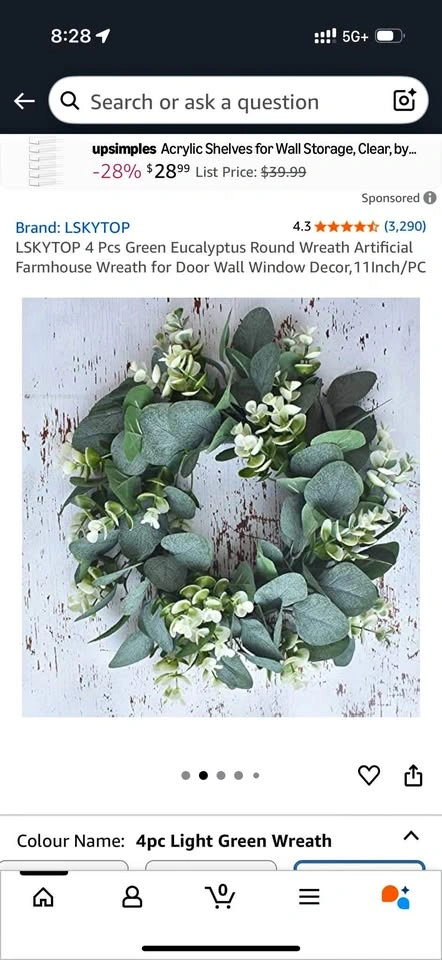 4 pcs Green Eucalyptus 11”round artificial farmhouse wreath. Great for holiday decorating. Use on doors, walls, windows, furniture. Pick up near Cawthra and Queensway.