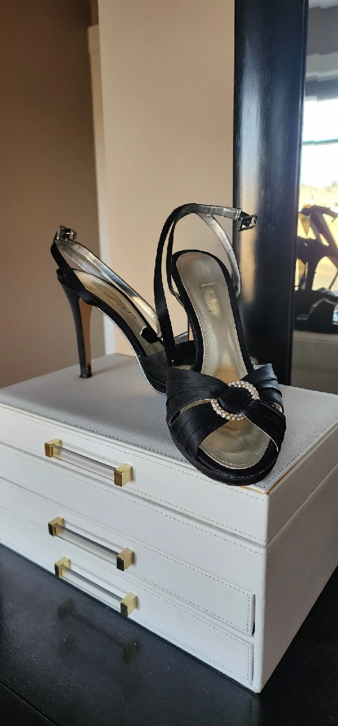 Selling a pair of Liz Claiborne black heels. They have a cute rhinestone detail on the front. Perfect for a night out!