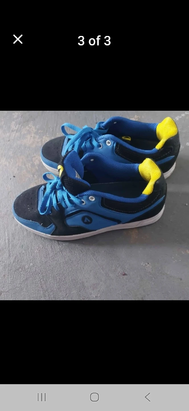 Selling a pair of Airwalk sneakers in blue and black! They are size 8.5 US, 7.5 UK, and 42 Euro. They are in good condition!