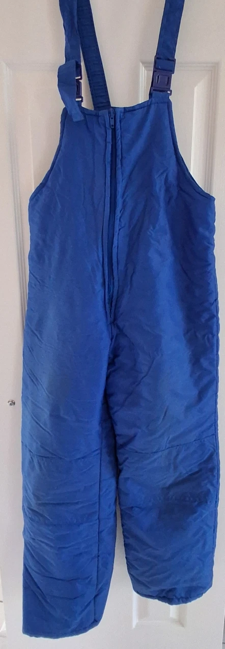 56Here are some blue snow pants in size 14! They're perfect for keeping warm and dry during winter activities, whether you're hitting the slopes or just playing in the snow