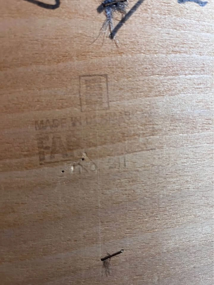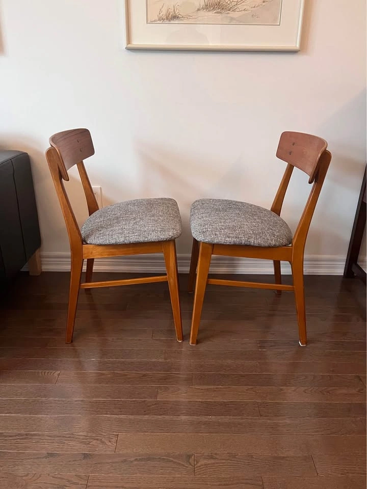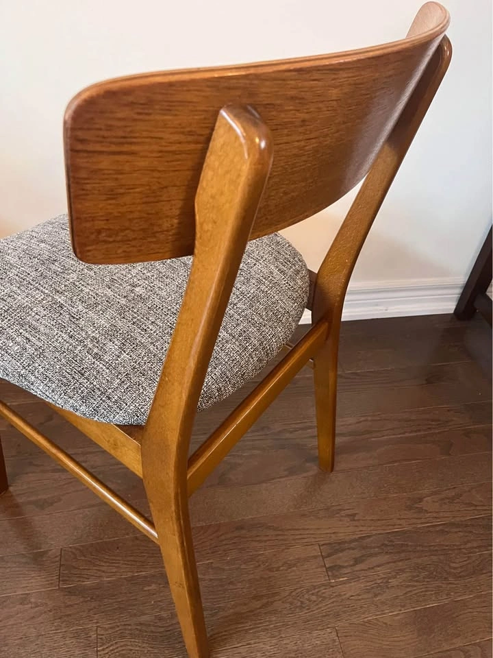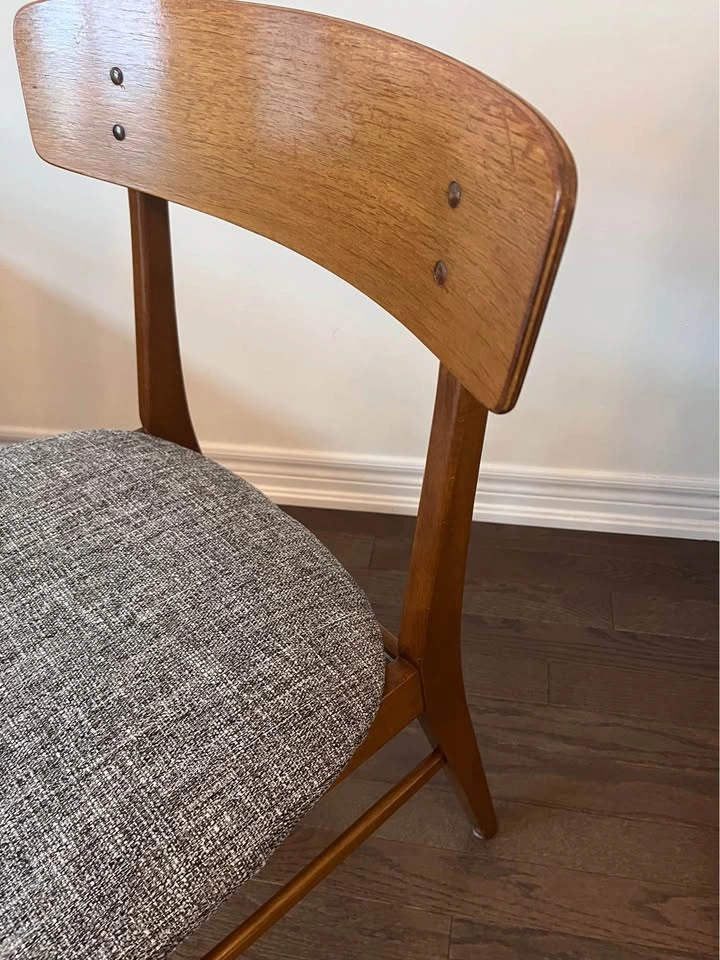 Pad was add for comfort and teak oil was applied. Wood is great condition.