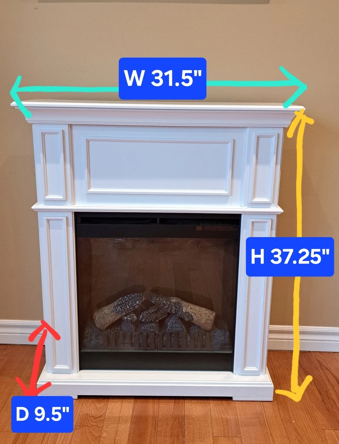 White Electric Fireplace - 31.5"W x 37.25"H x D9.5"