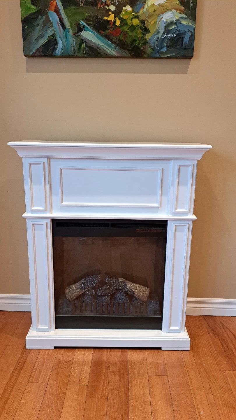 Selling a white electric fireplace in great condition! It has a classic design and would look great in any living room or den.