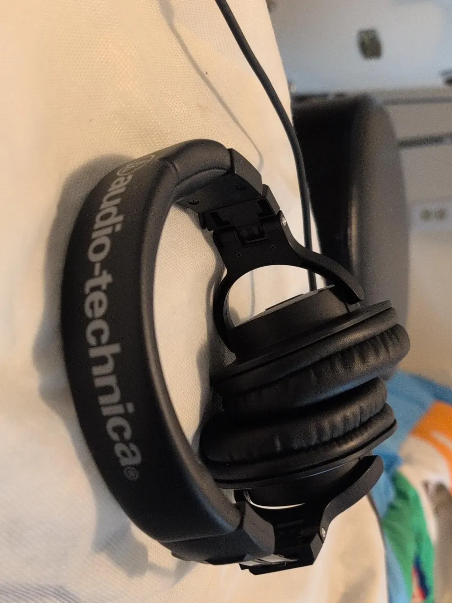 Selling a pair of Audio-Technica ATH-M20x headphones in black. Great for listening to music or monitoring audio. They're in good condition and ready for a new home!