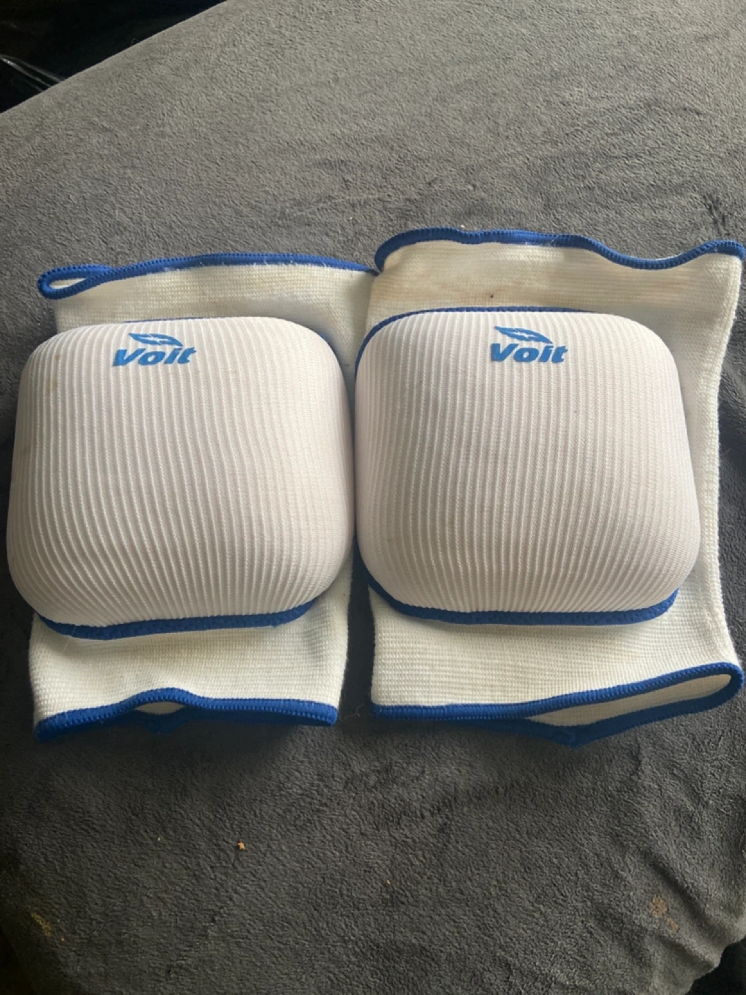 Selling a pair of Voit knee pads! They're white with blue trim and in good condition. Perfect for sports or other activities where you need a little extra protection for your knees