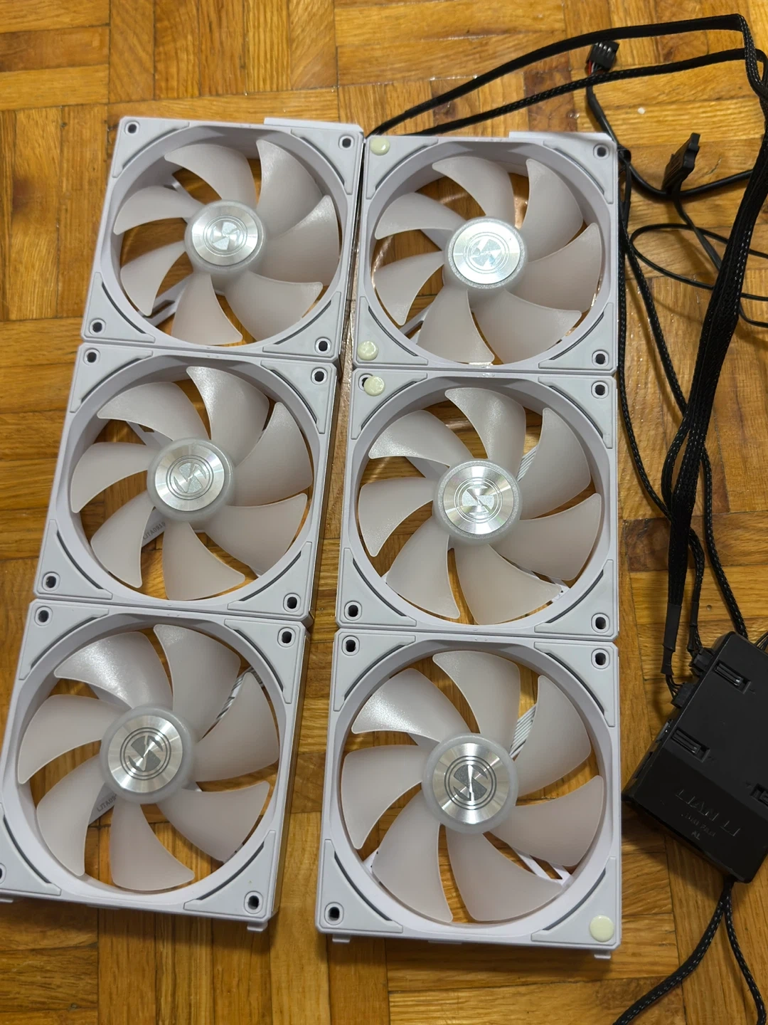 A set of three Lian Li UNI FAN SL120 V2 RGB white 120mm computer fans. Includes the controller hub for managing RGB and fan speed. These are great for building a clean and visually appealing PC. Connectors are standard. If interested contact me at (647) 612-1551 total I got fans I sale it for $240