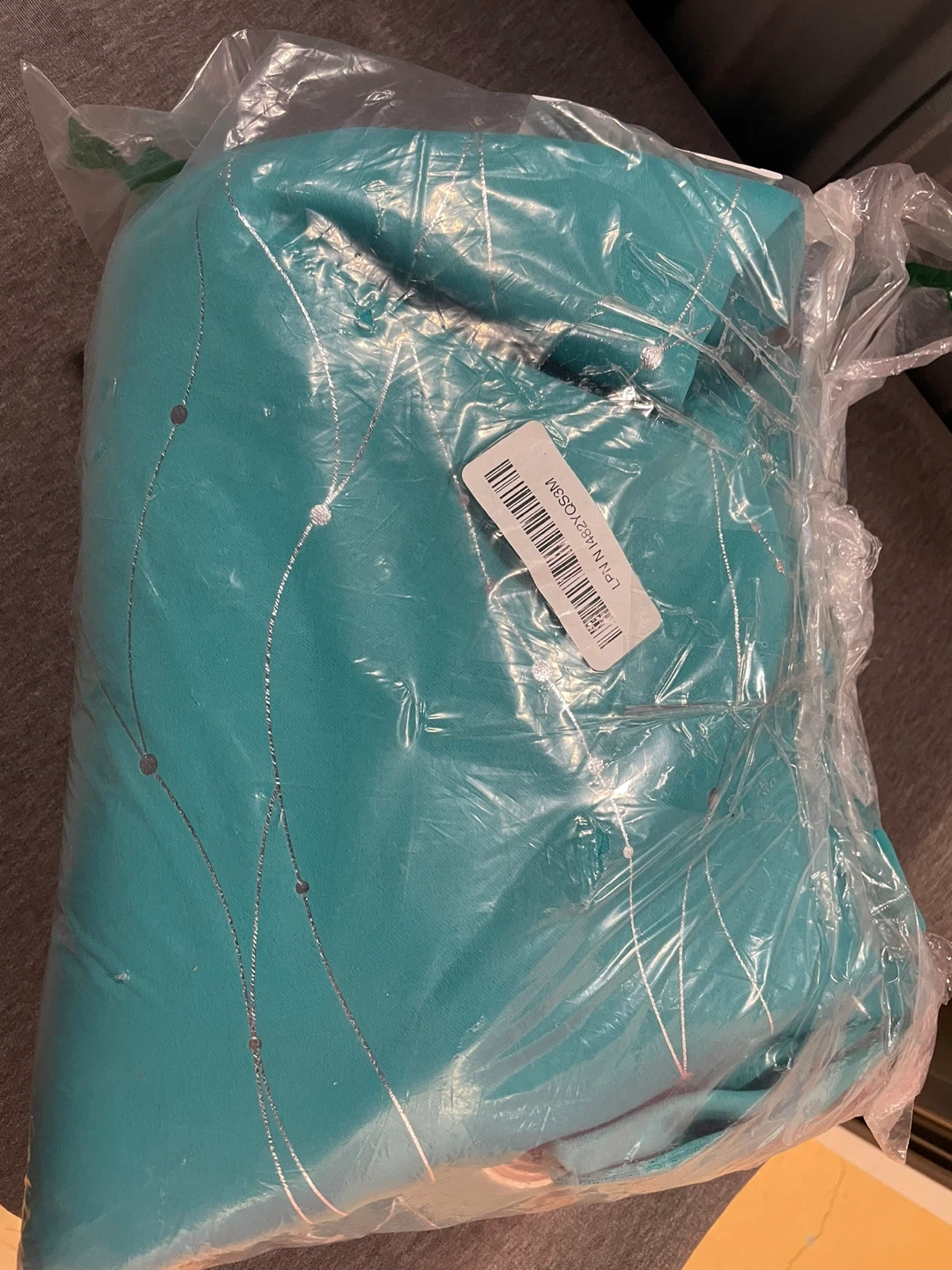 43Selling a teal curtain with a lovely silver design. It's nee and ready to add a pop of colour to your home 2 panels W52”x L84”