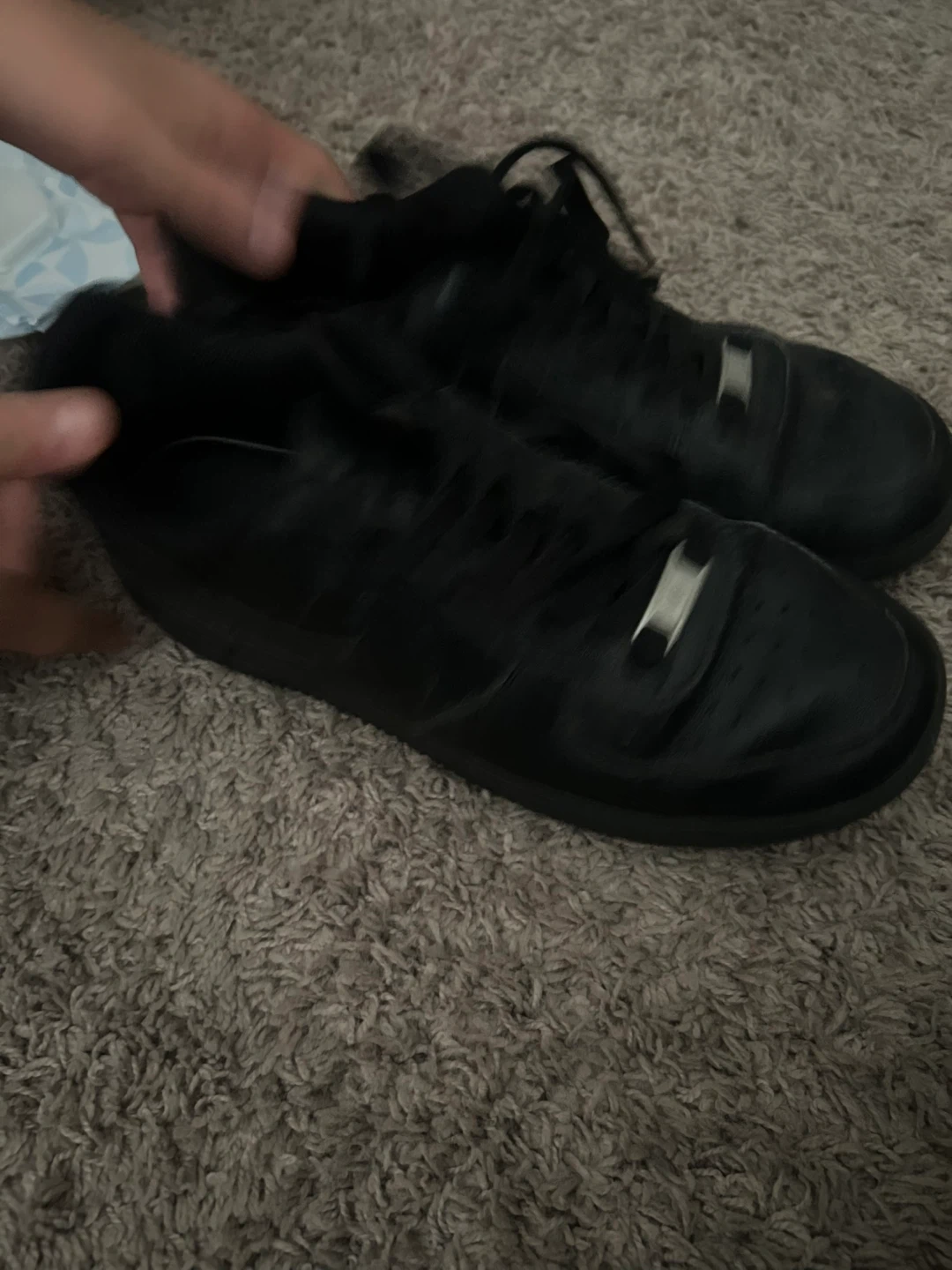 Selling a pair of Nike Air Force 1 Low sneakers in black. They show some signs of wear, but still have lots of life left in them! Great for everyday wear or hitting the streets.