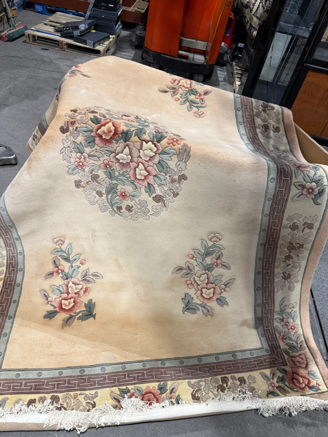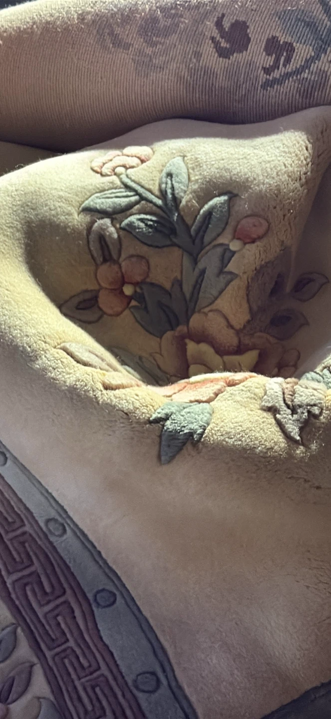 Selling a beautiful area rug with a floral pattern. It has a lovely beige colour and intricate detailing. Perfect for adding a touch of elegance to any room!