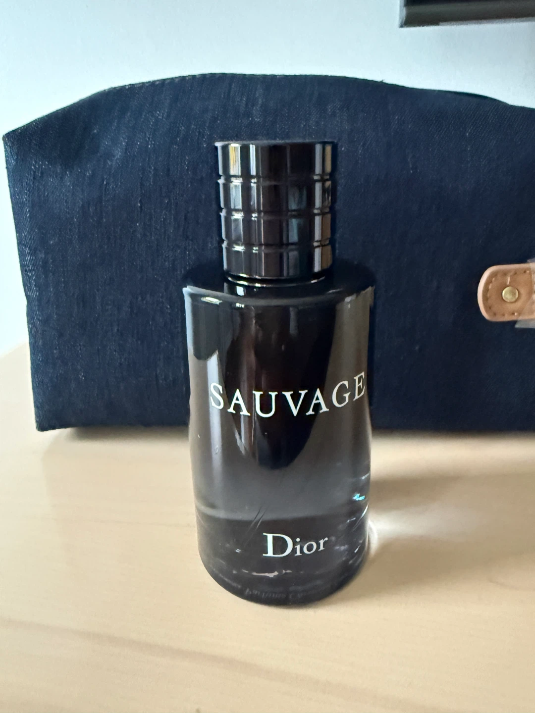 Selling a bottle of Dior Sauvage Eau de Toilette. It's a 3.4 oz (100 ml) size. Originally for $160