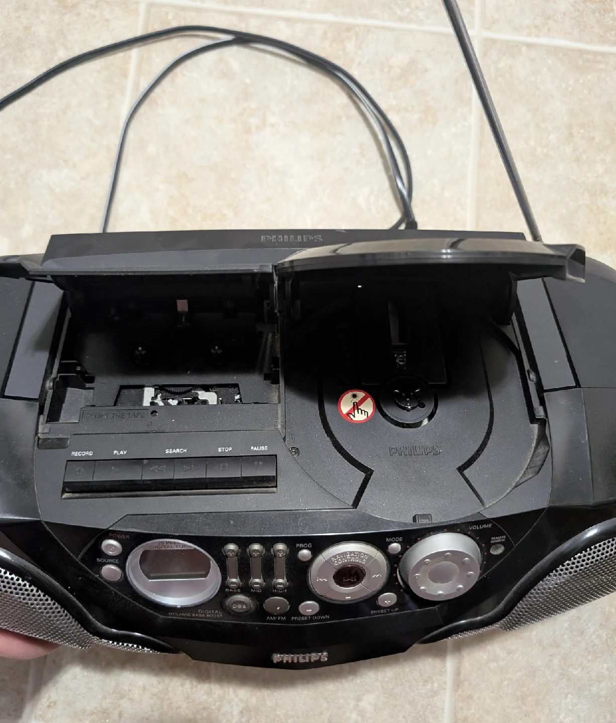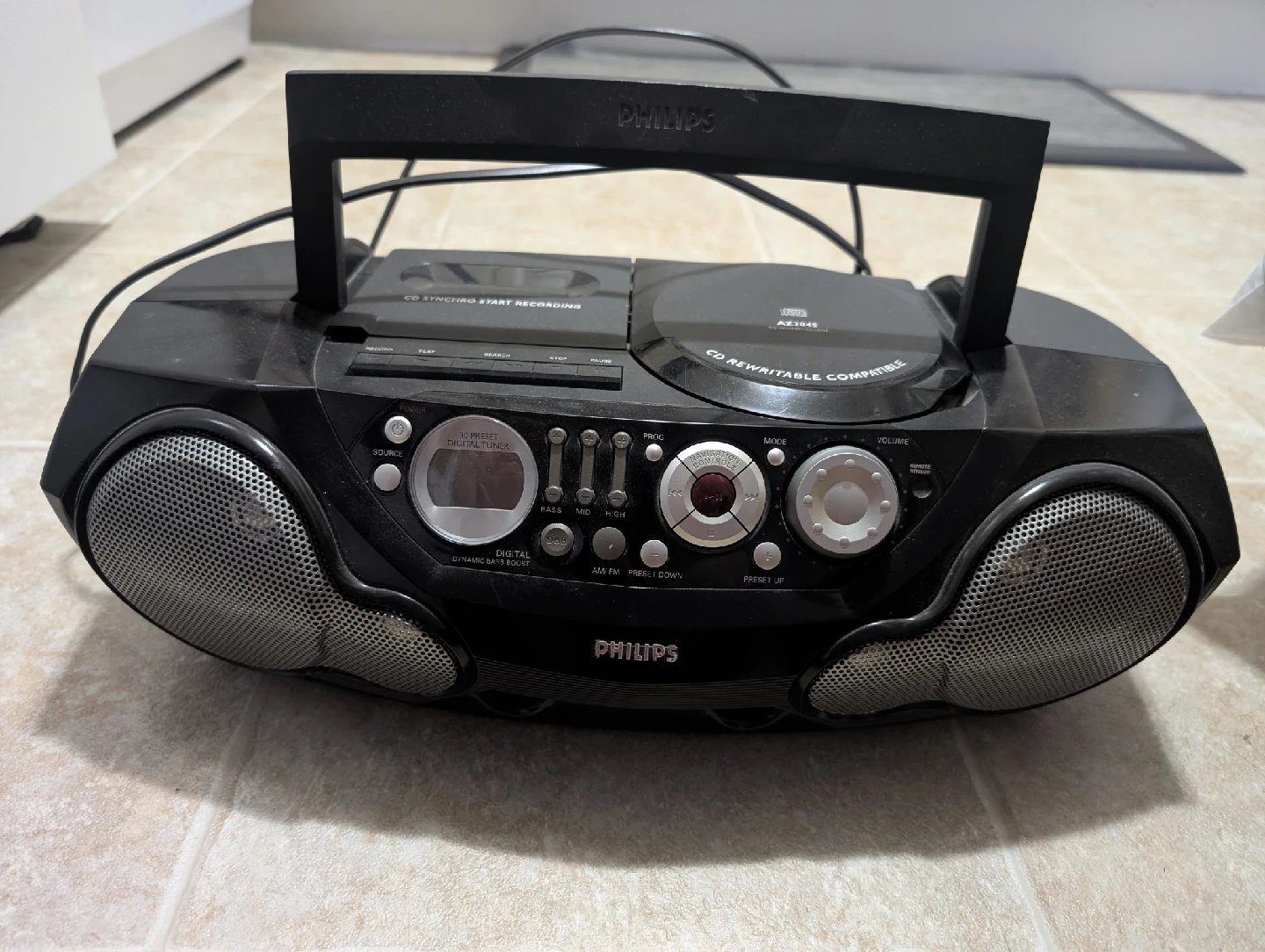 Selling a Philips Soundmachine! This portable CD, cassette player and radio combo. It's in great working condition and ready for a new home.